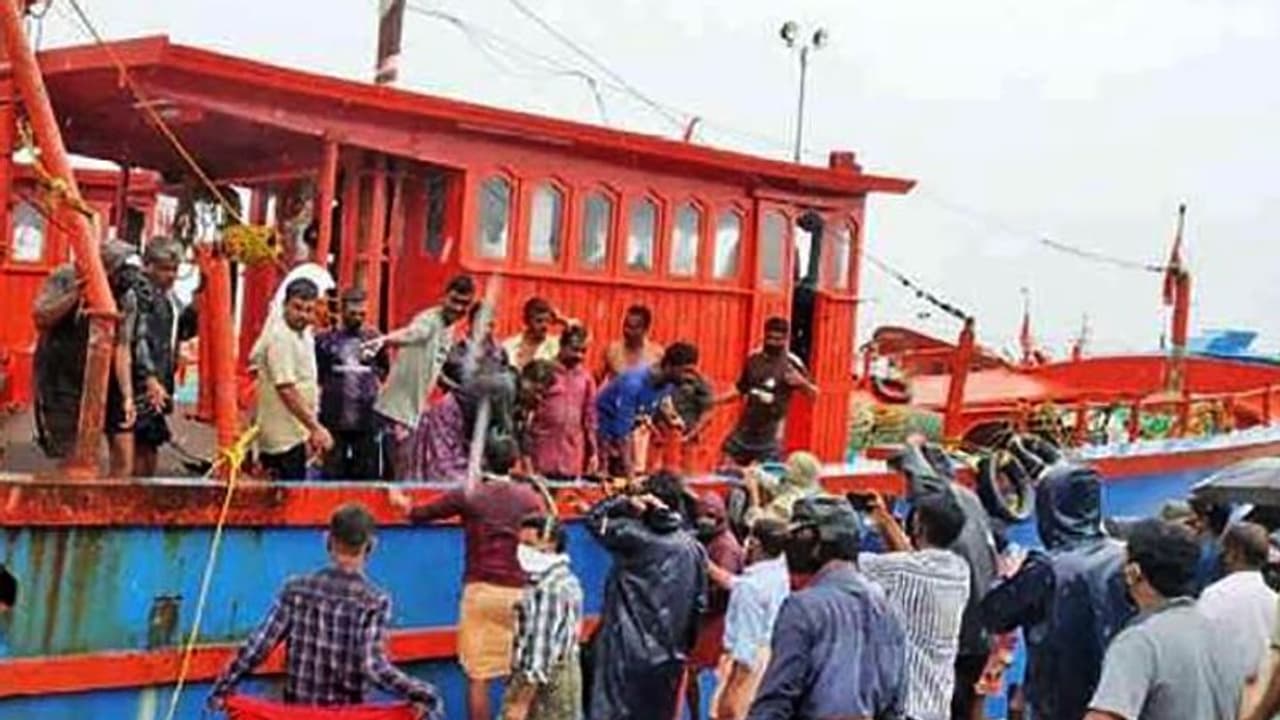 കൊല്ലം അഴീക്കല്നിന്ന് കടലില്പ്പോയ പമ്പാവാസന് എന്ന ബോട്ടിലെ ആറ് തൊഴിലാളികളെയാണ് എസ്.ഗോവിന്ദ് എന്ന ബോട്ടിലെ തൊഴിലാളികള് രക്ഷപ്പെടുത്തിയത്.