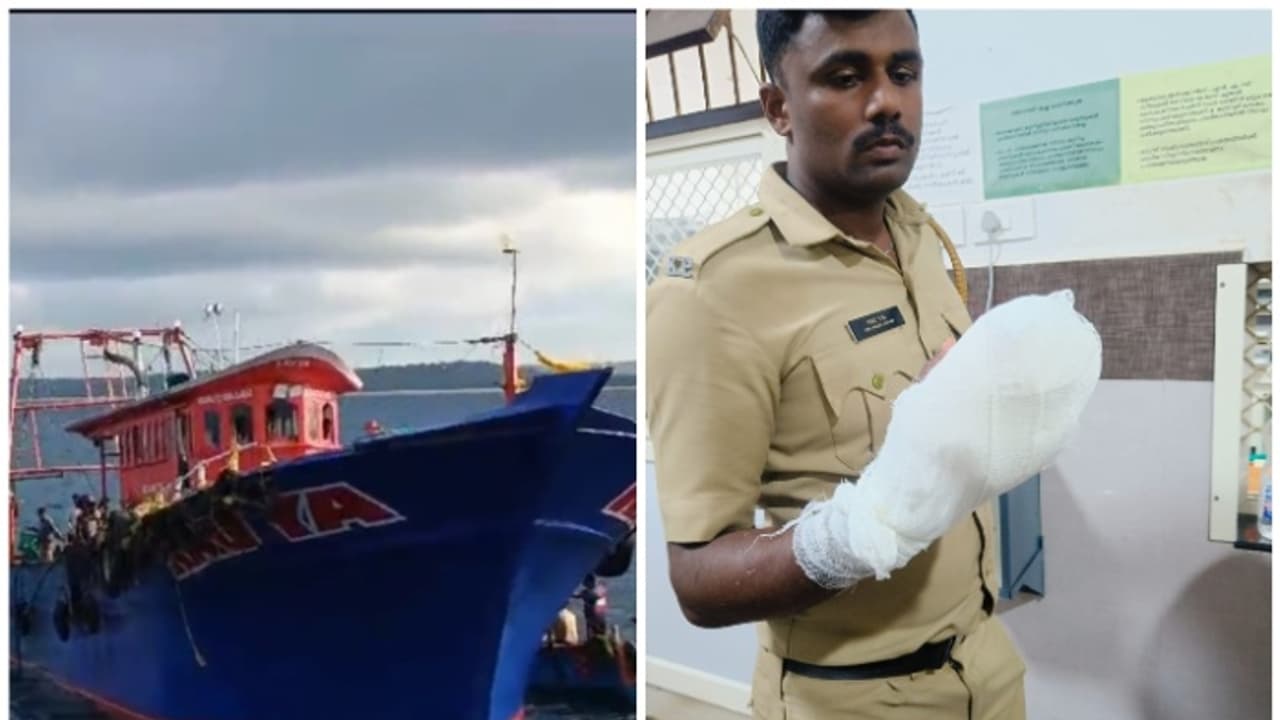 ഇന്നലെ ഉച്ചയോടെയായിരുന്നു സംഭവം. അനധികൃത മീൻ പിടുത്തം നടക്കുന്നതറിഞ്ഞ് പട്രോളിംഗ് നടത്തുന്നതനിടയിൽ, പൊലീസ് സംഘം കണ്ട തമഴ്നാട് ബോട്ടിനെ തടഞ്ഞ് നിർത്തി രേഖകൾ ആവശ്യപ്പെട്ടു. മതിയായ രേഖകൾ ഇല്ലെന്ന് ബോധ്യപ്പെട്ടതിനെ തുടർന്ന് കൂടുതൽ പരിശോധനക്കായി മറൈൻ ആംബുലൻസിൽ നിന്ന് ബോട്ടിനുള്ളിൽ കയറാൻ സി.പി.ഒ റ്റിജു ശ്രമിക്കുന്നതിനിടയിൽ രക്ഷപ്പെടാനായി ബോട്ട് മുന്നോട്ടെടുക്കാൻ ശ്രമിക്കുകയായിരുന്നു. ഈ സമയം ബോട്ട് ആംബുലൻസിൽ തട്ടി. രണ്ട് ബോട്ടുകൾക്കുമിടയിൽ കുടുങ്ങിയാണ് പോലീസുകാരൻറ വിരലുകൾക്ക് പരിക്കേറ്റത്.