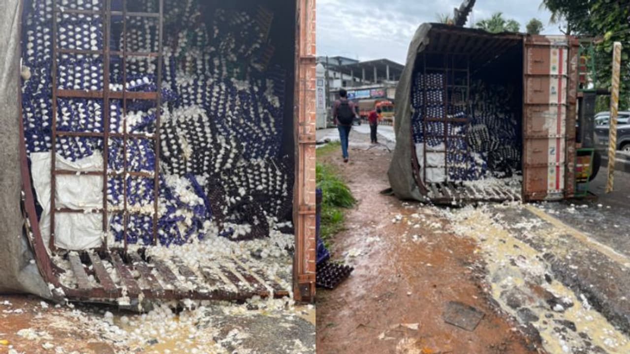 സംഭവത്തിൽ 10 ലക്ഷം രൂപയുടെ നഷ്ടം വന്നതായാണ് കണക്കാക്കുന്നത്. അപകടത്തെ തുടർന്ന് ലോറിയിലെ മുട്ട മുഴുവൻ റോഡിൽ മറിഞ്ഞുപൊട്ടി പരന്നൊഴുകി
