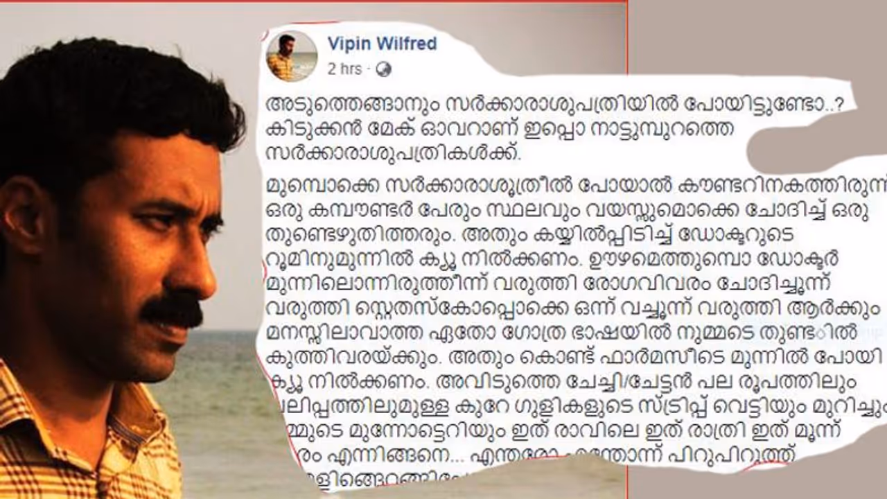 അതെ, അടുത്തെങ്ങാനും നിങ്ങള് സര്ക്കാര് ആശുപത്രിയില് പോയിട്ടുണ്ടോ... ? പോയെങ്കില് മാത്രമേ സര്ക്കാര് ആശുപത്രിയിലെ മാറ്റങ്ങളെ കുറിച്ചറിയാന് പറ്റൂ. അത്തരമൊരു അനുഭവത്തെ കുറിച്ച് എഴുതുകയാണ് വിപിന് വില്ഫ്രഡ്. അദ്ദേഹത്തിന്റെ സര്ക്കാര് ആശുപത്രി അനുഭവം ഇപ്പോള് ഫേസ് ബുക്ക് പേജില് വൈറലാണ്.