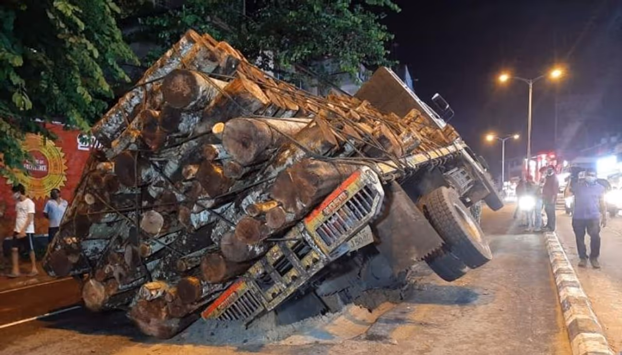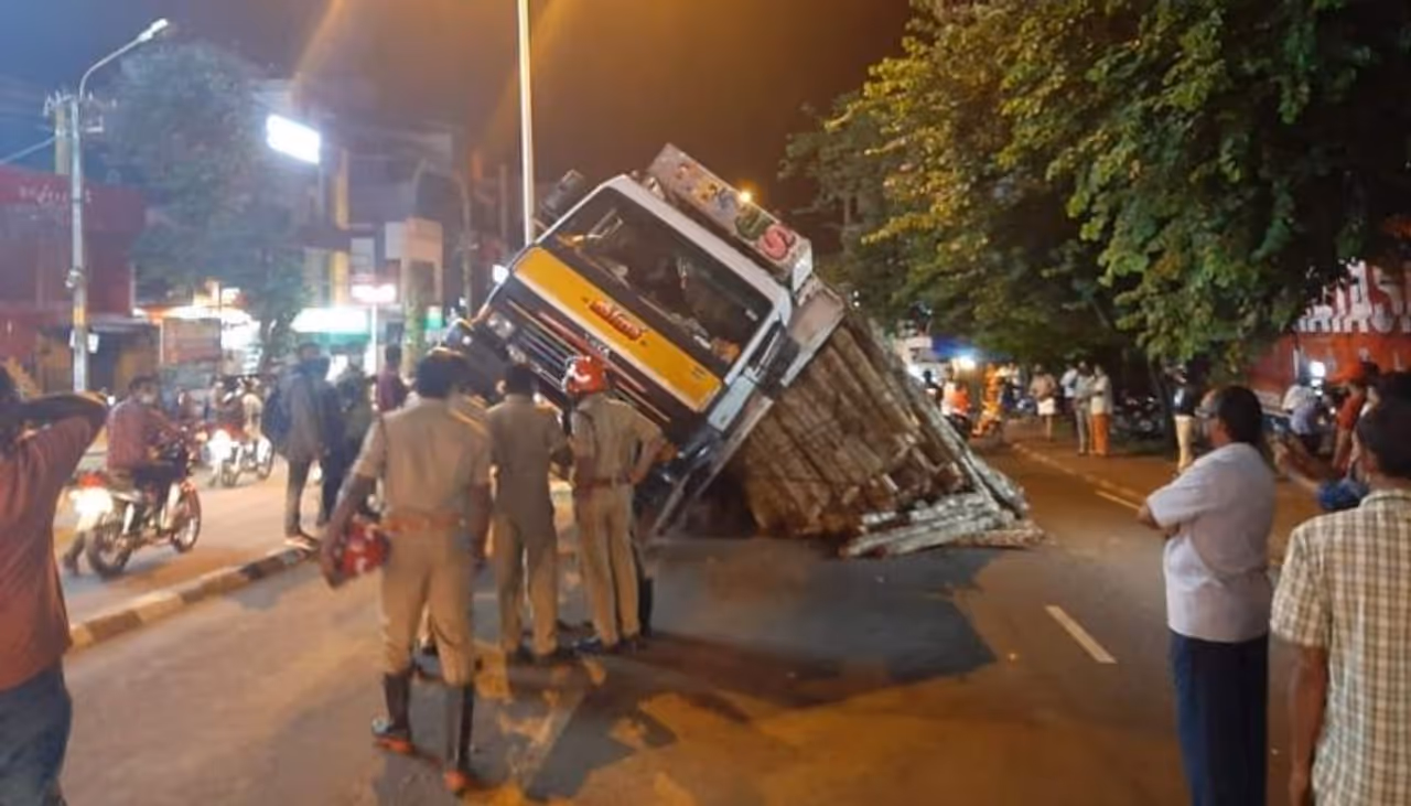 തിരുവനന്തപുരം (Thiruvananthapuram)വെള്ളയമ്പലം-ശാസ്തമംഗലം റോഡിൽ തടികയറ്റിവന്ന ലോറി(Lorry) റോഡിലെ കുഴിയിൽ താഴ്ന്നു. ഇന്നലെ വൈകിട്ട് എട്ടോടെ കെ.പി.സി.സി ആസ്ഥാനത്തിന് മുന്നിലായിരുന്നു അപകടം (lorry accident).