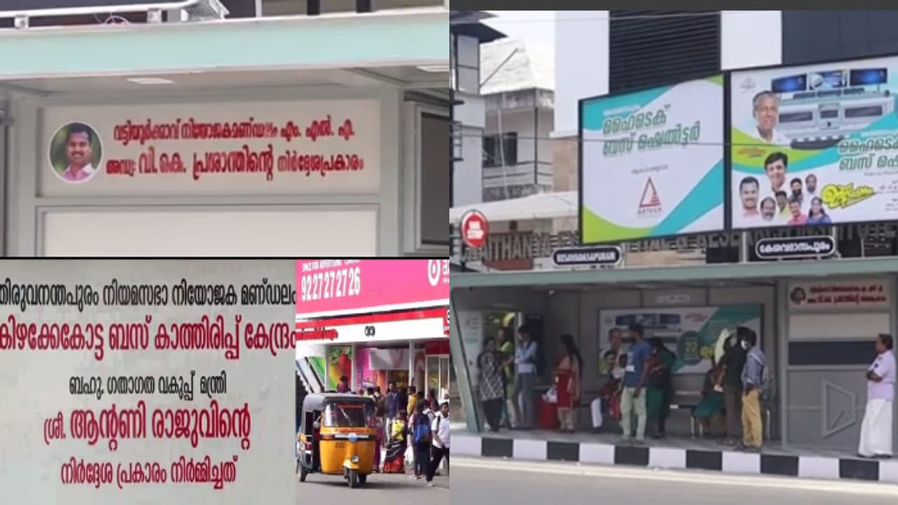 ഇതൊക്കെ മാറ്റി ബോര്ഡുകളിൽ പ്രത്യക്ഷപ്പെട്ട ചില വാചകങ്ങൾ ഉപയോഗിക്കാൻ തുടങ്ങിയതാണ് സോഷ്യൽ മീഡിയയിലടക്കം രസകരമായ ചര്ച്ചകൾക്ക് കാരണമാകുന്നത്. തലസ്ഥാന നഗരത്തിലെ കിഴക്കേക്കോട്ടയിൽ കോവളം ഭാഗത്തേക്കുള്ള ബസ് കാത്തിരിപ്പ് കേന്ദ്രത്തിലെ വാചകങ്ങൾ ഇങ്ങനെ 'ബഹു. ഗതാഗത വകുപ്പ് മന്ത്രി ആന്റണി രാജുവിന്റെ നിർദേശ പ്രകാരം നിർമിച്ചത്'. കേശവദാസപുരത്ത് ഉള്ളൂർ ഭാഗത്തേക്ക് പോകുന്ന ബസ് കാത്തിരിപ്പ് കേന്ദ്രത്തിൽ 'ബഹു. വികെ പ്രശാന്ത് എംഎൽഎയുടെ നിർദേശ പ്രകാരം നിർമിച്ചത്' എന്നിങ്ങനെയാണ് ബോർഡുകൾ.