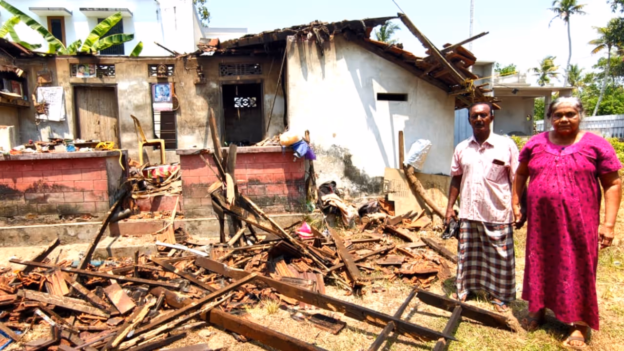 അമ്പലപ്പുഴയിൽ ശക്തമായ കാറ്റിലും മഴയിലും കാലപ്പഴക്കമുള്ള വീട് പൂർണമായി തകർന്നു. രാത്രിയിൽ വീടിന് പുറത്തിറങ്ങിയതിനാൽ കുടുംബം അത്ഭുതകരമായി രക്ഷപ്പെട്ടു. ലൈഫ് പദ്ധതിയിൽ 10 വർഷമായി അപേക്ഷ നൽകി കാത്തിരുന്ന കുടുംബമാണ് ഇപ്പോൾ വാടകവീട്ടിൽ അഭയം തേടിയിരിക്കുന്നത്.