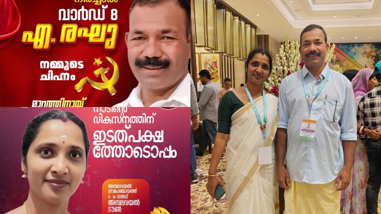 അമ്പലവയൽ പഞ്ചായത്ത് തെരഞ്ഞെടുപ്പിൽ സിപിഎം സ്ഥാനാർത്ഥികളായി രഘുവും ഭാര്യ നിഷയും തൊട്ടടുത്ത വാർഡുകളിൽ മത്സരിക്കുന്നു. വാർഡുകൾ എസ്ടി സംവരണമായതോടെയാണ് കുറുമ സമുദായത്തിൽ നിന്നുള്ള ഇരുവരെയും പാർട്ടി സ്ഥാനാർത്ഥികളാക്കിയത്. ഇരുവരും തികഞ്ഞ വിജയപ്രതീക്ഷയിലാണ്.