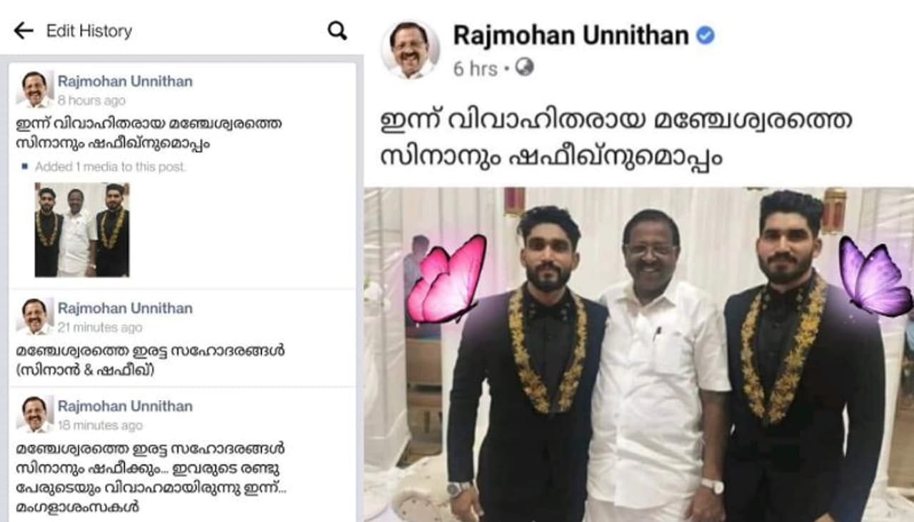 വിവാഹവേദിയില് വരന്മാര്ക്കൊപ്പമുള്ള ചിത്രത്തിലെ കുറിപ്പും ചിത്രത്തില് വധുക്കളുടെ അഭാവവും വ്യാപകമായി ചര്ച്ചയായിരുന്നു. വിമര്ശനവും ട്രോളുകളും വന്നതിന് പിന്നാലെ പല തവണ കുറിപ്പ് മാറ്റിയെങ്കിലും പിന്നീട് പോസ്റ്റ് എം പി പിന്വലിക്കുകയായിരുന്നു