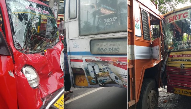 ആലപ്പുഴ: ആലപ്പുഴയില് ദേശീയപാതയില് കളപ്പുരയിലും കളര്കോടുമുണ്ടായ വ്യത്യസ്ത അപകടങ്ങളില് വില്ലനായി കെഎസ്ആര്ടിസി. കളപ്പുരയില് ലോറിയുമായി കൂട്ടിയിടിച്ചാണ് അപകടമെങ്കില് എസ് ഡി കോളജിനു സമീപത്തെ ട്രാഫിക് സിഗ്നലില് നിര്ത്തിയിട്ടിരുന്ന ഓട്ടോറിക്ഷയ്ക്ക് പിന്നില് ബസ് ഇടിക്കുകയായിരുന്നു.