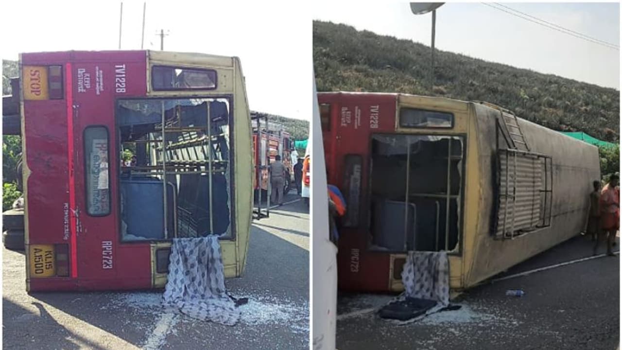 പത്തനംതിട്ട : ശബരിമല പാതയിലെ ളാഹയിൽ ശബരിമല തീർത്ഥാടകർ സഞ്ചരിച്ച കെഎസ്ആർടിസി ബസ് മറിഞ്ഞു. പമ്പ യിൽ നിന്ന് തിരുവനന്തപുരത്തേക്ക് പോയ ബസ് നിയന്ത്രണം വിട്ട് മറിയുകയായിരുന്നു. 56 പേരാണ് ബസിലുണ്ടായിരുന്നത്. പരിക്കേറ്റവരെ പത്തനംതിട്ട ജനറൽ ആശുപത്രിയിലും പെരുനാട് ആശുപത്രിയിലുമെത്തിച്ച് പ്രാഥമിക ചികിത്സ നൽകി. ആർക്കും ഗുരുതര പരിക്കില്ല.