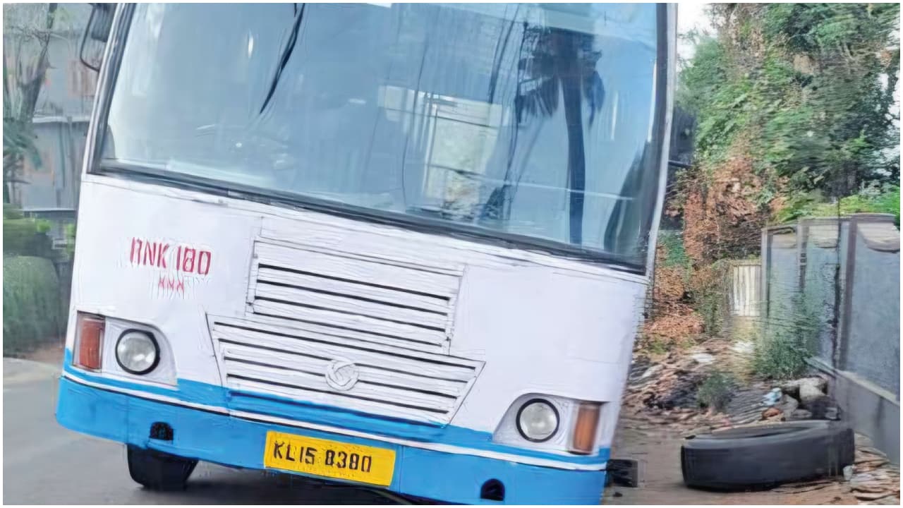 കൊച്ചി: സർവീസിനിടെ കെഎസ്ആർടിസി ബസിന്‍റെ മുന്നിലെ ടയർ ഊരിപ്പോയി. ടയർ ഊരിപ്പോയതോടെ വാഹനം നിയന്ത്രണം വിട്ട് കുറച്ച് ദൂരം നിരങ്ങിയെങ്കിലും ബസ് നിന്നതിനാൽ വൻ അപകടം ഒഴിവായി. ശനിയാഴ്ച പുലർച്ചെ അഞ്ചര മണിയോടെ പിറവം ഗാരേജിൽ നിന്ന് എറണാകുളത്തേക്ക് പുറപ്പെട്ട ബസിന്‍റെ ടയറാണ് ഊരിപ്പോയത്. ബസ് മുളന്തുരുത്തി കാരിക്കോട് വളവിലെത്തിയപ്പോഴാണ് മുന്നിലെ ഇടത് ടയർ ഊരി തെറിച്ച് പോയത്. ഈ സമയം ബസിൽ മുപ്പതിൽ അധികം യാത്രക്കാർ ഉണ്ടായിരുന്നു.