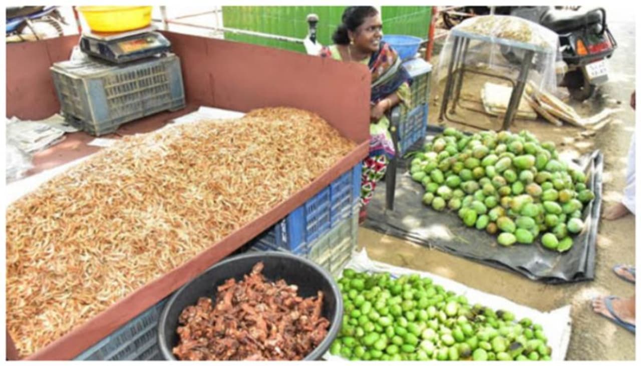 ഉണങ്ങിയ കൊഞ്ചും മാങ്ങയും ചേർത്തുണ്ടാക്കുന്ന കറി കുംഭഭരണി നാളിൽ ഒഴിച്ചുകൂടാൻ കഴിയാത്ത വിഭവമാണ്. കുംഭഭരണിയടുത്തതോടെ കൊഞ്ചും മാങ്ങയും കടകളിൽ സുലഭമായി ലഭിക്കുന്നുണ്ട്. കുംഭഭരണിയും കൊഞ്ചും മാങ്ങയും തമ്മിലുളള ബന്ധത്തിന് പിന്നിൽ കുത്തിയോട്ടവുമായി ബന്ധപ്പെട്ട ഒരു ഐതിഹ്യമുണ്ട്.