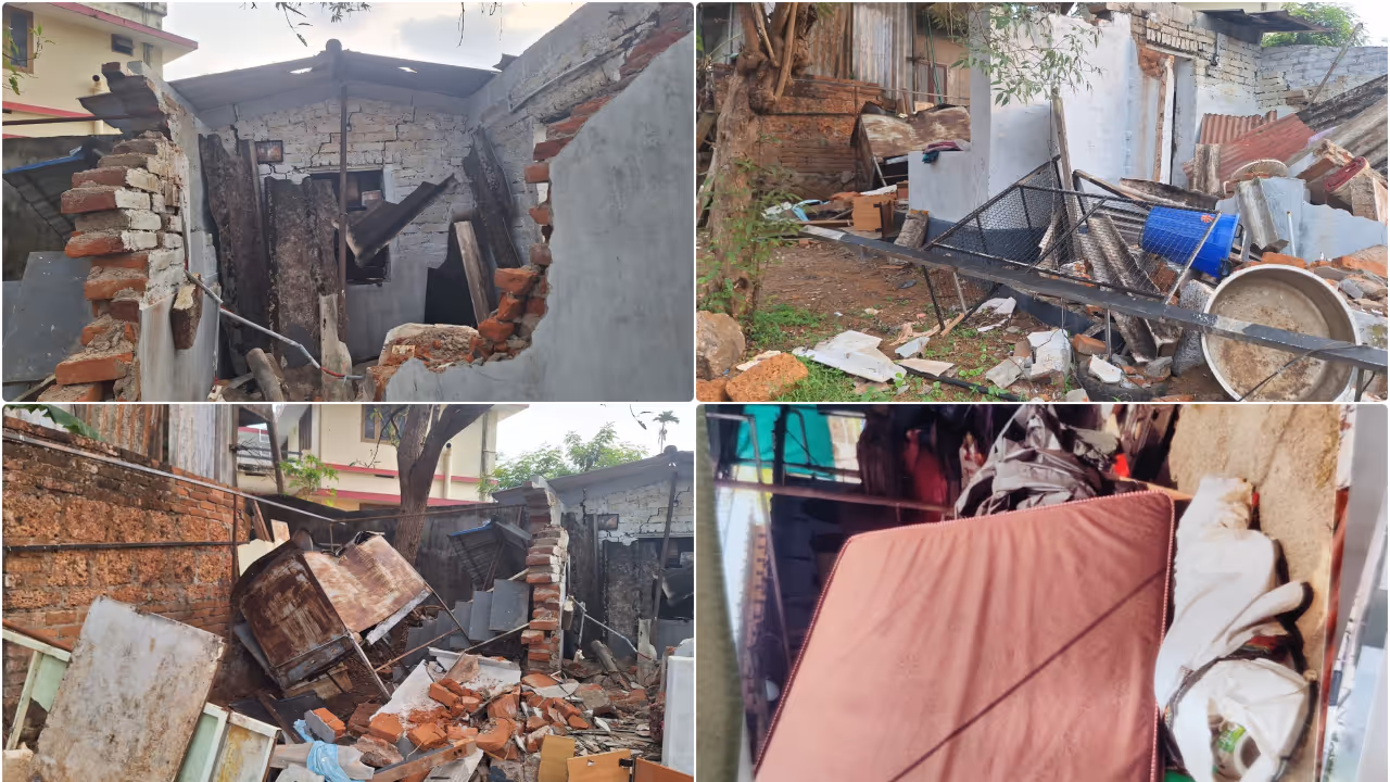 തൃശൂർ കുരീച്ചിറയിൽ ബന്ധുവിന്റെ മരണാനന്തര ചടങ്ങിന് പോയി മടങ്ങിയെത്തിയ ദമ്പതികളുടെ വാടകവീട് ഹിറ്റാച്ചി ഉപയോഗിച്ച് പൂർണ്ണമായും തകർത്തു.