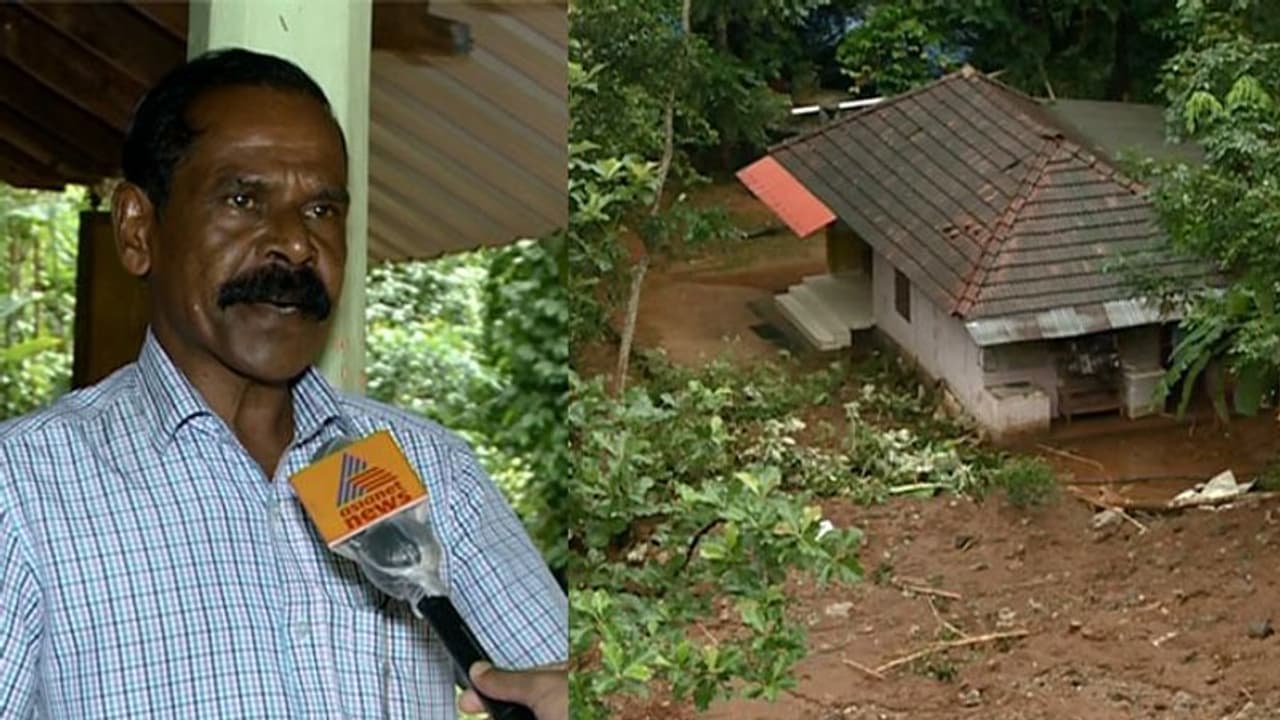 ഇടുക്കി: കനത്ത മഴയെത്തുടർന്നുണ്ടായ മണ്ണിടിച്ചിലിൽ തലനാരിഴയ്ക്ക് രക്ഷപ്പെട്ടാണ് ഇടുക്കി വെള്ളിയാമറ്റം സ്വദേശി ജോർജും കുടുംബവും ദുരിതാശ്വാസ ക്യാമ്പിലെത്തിയത്. കഴിഞ്ഞ ശനിയാഴ്ചയായിരുന്നു വീടിന് മുകളിൽ മണ്ണിടിഞ്ഞ് വീണത്. ജീവൻ രക്ഷപ്പെട്ടെങ്കിലും വീടിന് ചുറ്റും മണ്ണിടിഞ്ഞ് കിടക്കുന്നതിനാൽ വീട്ടിലേക്ക് എപ്പോൾ പോകാൻ കഴിയുമെന്ന ആശങ്കയിലാണ് ജോർജ്.