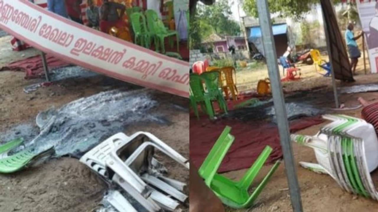 125 ഓളം കസേരകളും ഫ്ളോര്മാറ്റും തറപോളയും ഷീറ്റും അടക്കമുള്ള സാധനങ്ങള് പൂര്ണ്ണമായും കത്തി നശിച്ചു. എല്ഡിഎഫിന്റെ വിജയം ഉറപ്പായതോടെ വിളറിപിടിച്ച കോണ്ഗ്രസ് പ്രവര്ത്തകരാണ് ഓഫീസിന് തീയിട്ടതെന്ന് എല്ഡിഎഫ് ആരോപിച്ചു. പൊലീസ് സ്ഥലത്തെത്തി മേല്നടപടികള് സ്വീകരിച്ചു. സമീപത്തെ കടയിലെ സിസിടിവി ദൃശ്യങ്ങളില് നിന്നും പ്രതികളെ കണ്ടെത്താനുള്ള ശ്രമങ്ങള് ആരംഭിച്ചതായി പൊലീസ് പറഞ്ഞു.