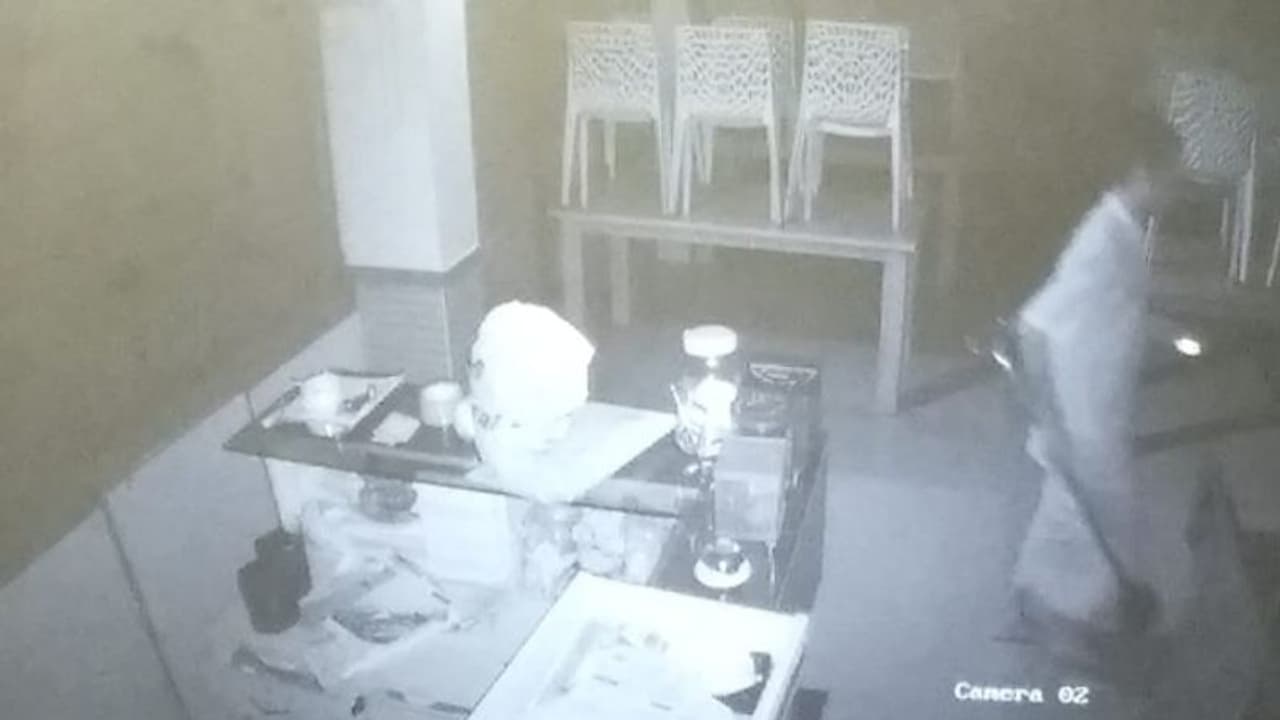 ഷട്ടറുയർത്തി അകത്തുകടന്ന മോഷ്ടാവ് അടുക്കളയിൽ നിന്ന് ചട്ടുകം കൊണ്ടുവന്ന് കൗണ്ടറിലെ പൂട്ടുകൾ തകർക്കുകയായിരുന്നു