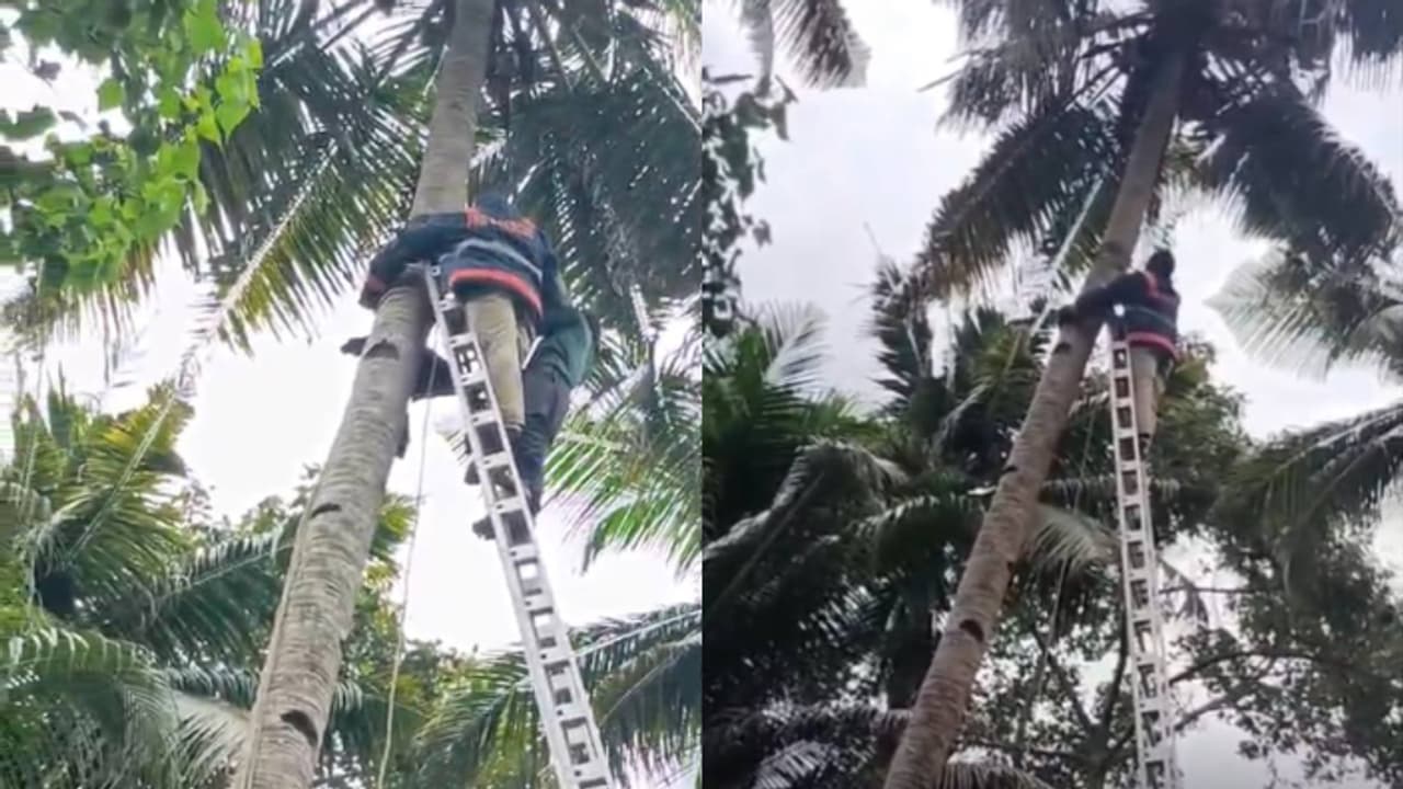 കായംകുളം: തേങ്ങയിടാൻ കയറിയ ഇതരസംസ്ഥാനത്തൊഴിലാളി കടന്നൽ കുത്തേറ്റ് തെങ്ങിന്റെ മുകളിൽ കുടുങ്ങി. കീരിക്കാട് തെക്ക് ഐക്യ ജംഗ്ഷന് സമീപം വെളുത്തേടത്ത് സന്തോഷ് കുമാറിന്റെ പുരയിടത്തിലാണ് സംഭവം. കായംകുളം അഗ്നിരക്ഷാസേനയിലെ അസിസ്റ്റന്റ് സ്റ്റേഷൻ ഓഫിസർ ശ്രീ സജിത്ത് ലാലിന്റെ നേതൃത്വത്തിൽ എത്തിയ സംഘത്തിലെ ഫയർ & റെസ്ക്യൂ ഓഫീസർ ശ്രീ. ഷിജൂ റ്റി സാം ലാഡർ ഉപയോഗിച്ച് തെങ്ങിൽ കയറി തെങ്ങിന്റെ പൊത്തിലെ കടന്നൽ കൂടിന്റെ വാതിൽ തുണി ഉപയോഗിച്ച് മൂടി കെട്ടുകയും വെളിയിൽ ഉണ്ടായിരുന്ന കടന്നൽ കൂട്ടത്തെ ഹിറ്റ് ഉപയോഗിച്ച് തുരത്തുകയും ചെയ്തു. ശേഷം സഹസികമായി, ചത്തിസ്ഗഡ് സ്വദേശിയായ 21 വയസ്സുള്ള വിക്കി എന്ന വ്യക്തിയെ ലാഡർ ഉപയോഗിച്ചു സുരക്ഷിതമായി താഴെ എത്തിച്ചു. കടന്നലിന്റെ കുത്തേറ്റ ആളിനെ അടുത്തുണ്ടായിരുന്ന വാഹനത്തിൽ കയറ്റി ആശുപത്രിയിലേക്ക് അയച്ചു.