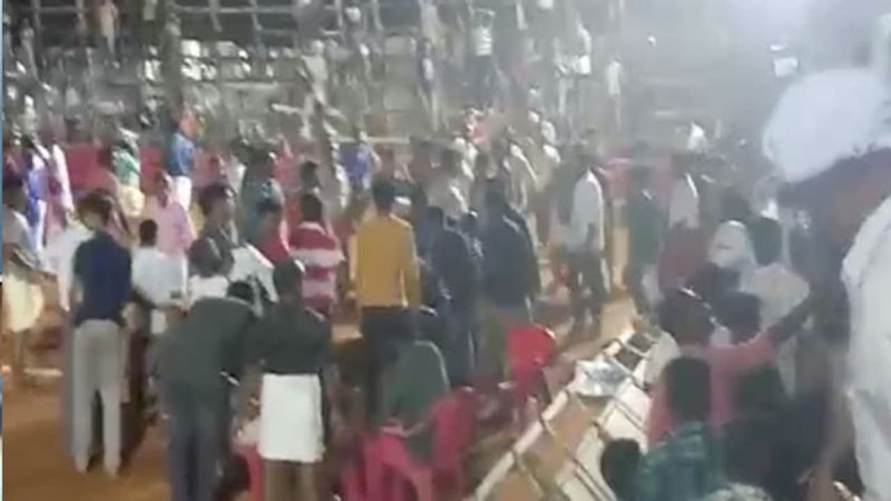 മത്സരം നടക്കുന്നതിനിടെ ആണ് അപകടമുണ്ടായത്. പരിക്കേറ്റ ആറുപേരെ കോഴിക്കോട് മെഡിക്കല് കോളേജില് പ്രവേശിപ്പിച്ചു .