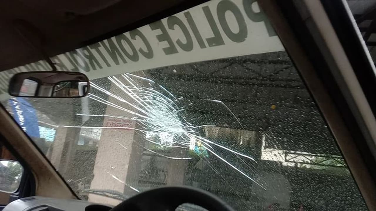 വാഹനത്തിന്റെ മുകളിൽ കയറി നിന്നു അസഭ്യം വിളിച്ചും ഭീഷണിമുഴക്കിയും ഭീകരാന്തരീക്ഷം സൃഷ്ടിച്ച സംഘം വീണ്ടും പൊലീസിന് നേരെ കല്ലെറിഞ്ഞു. വാഹനത്തിന്റെ മുൻവശത്തെ ചില്ലും വലതു വശത്തെ പുറകിലുള്ള ചില്ലും അടിച്ചു തകർത്തു.