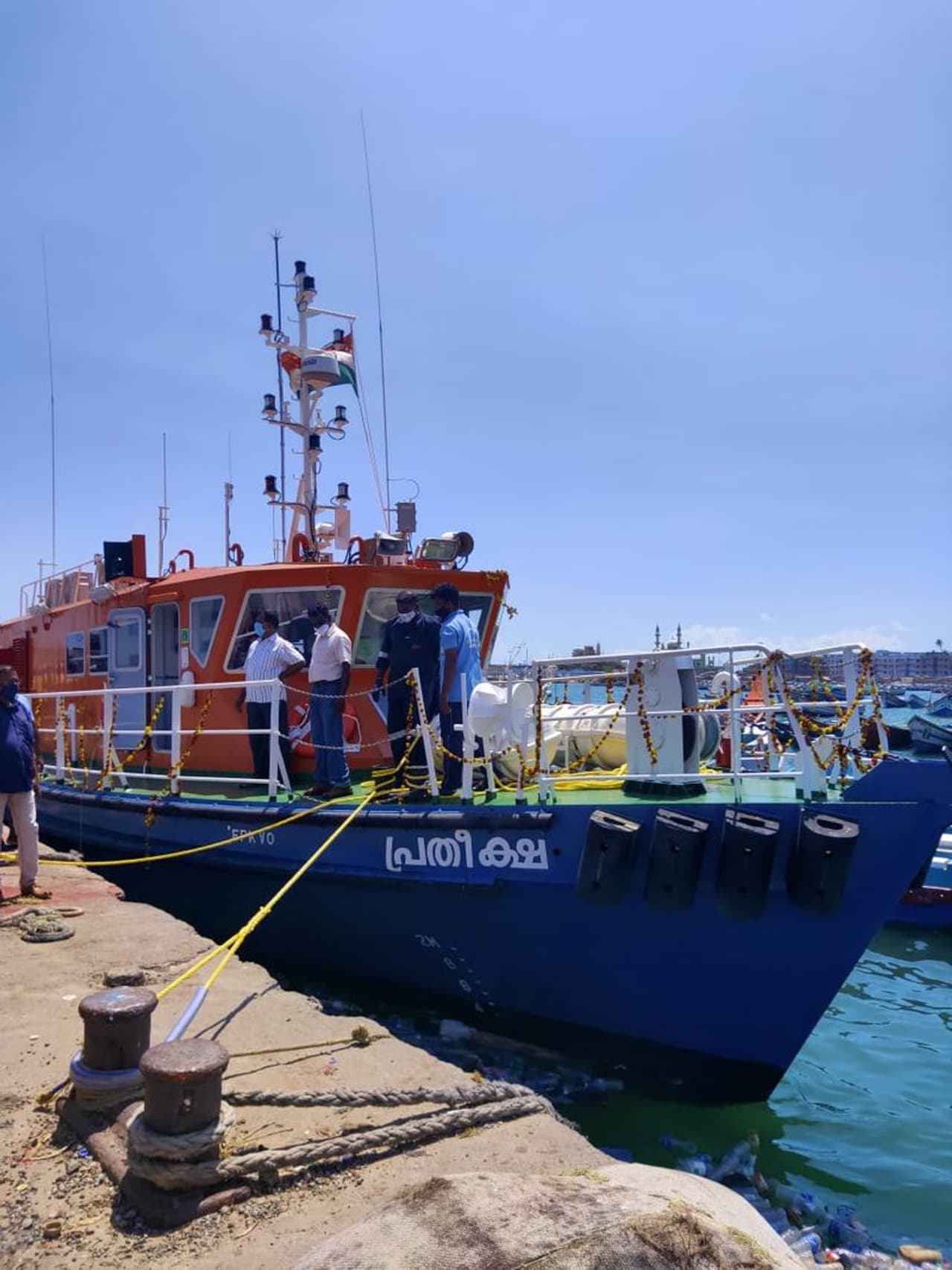 കാത്തിരിപ്പിനൊടുവിൽ ഇന്നലെ ഉച്ചക്ക് 12 മണിയോടെ പഴയ വാർഫിൽ നങ്കൂരമിട്ട ആംബുലൻസിൻറെ മാസ്റ്റർക്ക് ബൊക്ക നൽകിയാണ് തീരത്തുകാർ എതിരേറ്റത്. മറൈൻ ആംബുലൻസ് എത്തിയതോടെ മറൈൻ എൻഫോഴ്സ്മെൻറിന് പട്രോളിംഗിനായി വിഴിഞ്ഞത്തുണ്ടായിരുന്ന രണ്ട് വാടക ബോട്ടുകളിൽ ഒന്നിനെ നീണ്ടകരയിലേക്ക് മാറ്റാനും തീരുമാനമായി.