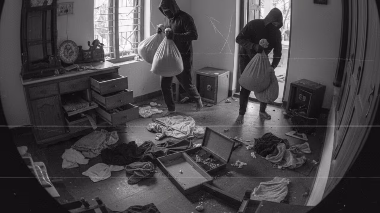 വീടിന്റെ പിൻഭാഗത്തെ ഗ്രിൽ തകർത്ത് കതക് പൊളിച്ചാണ് മോഷ്ടാക്കൾ അകത്തുകടന്നത്. മുറിക്കുള്ളിലെ അലമാരകൾ കുത്തിത്തുറന്ന നിലയിലായിരുന്നു. സാധനങ്ങളെല്ലാം വാരിവലിച്ചിട്ട നിലയിലും. മോഷണത്തിന്റെ ദൃശ്യങ്ങൾ ലഭിക്കാതിരിക്കാൻ വീടിനുള്ളിലെ സിസിടിവി ക്യാമറകളുടെ ഹാർഡ് ഡിസ്ക് ഉൾപ്പെടെയുള്ളവ മോഷ്ടാക്കൾ അപഹരിച്ചു.