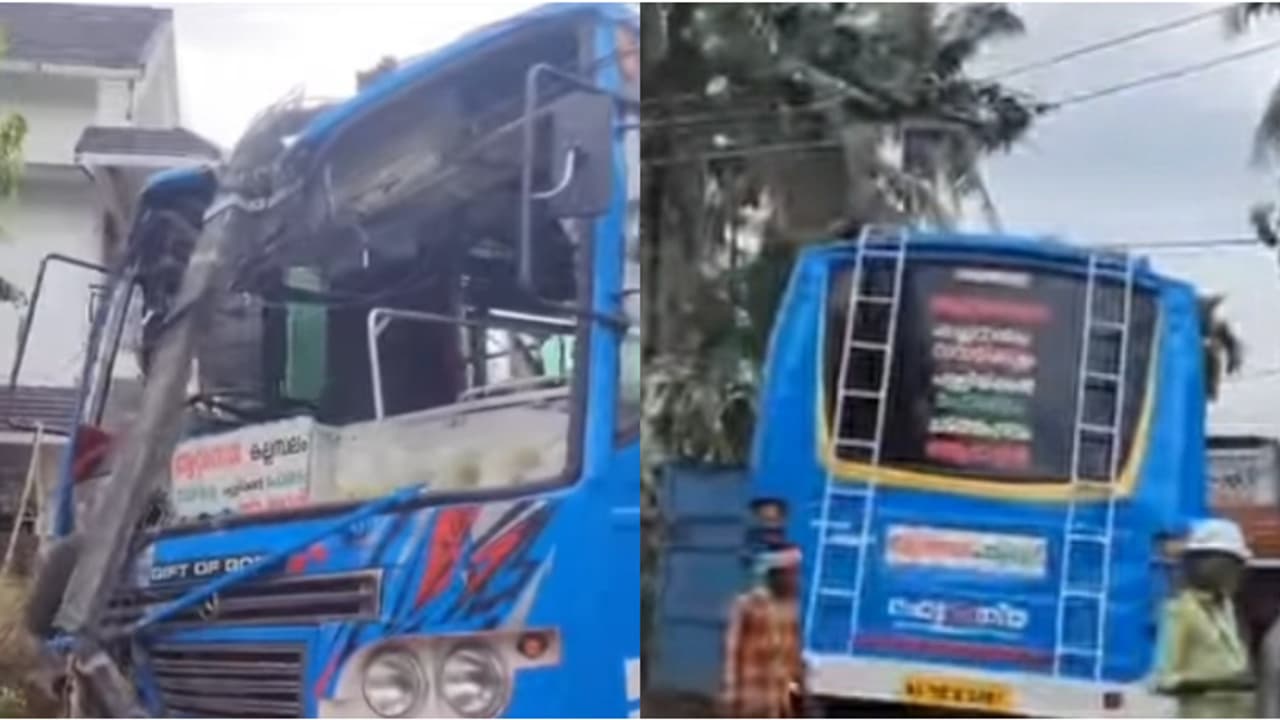 ഡ്രൈവറുടെ കാലിലെ മസിൽ വലിഞ്ഞതോടെയാണ് ബസ് നിയന്ത്രണം നഷ്ടപ്പെട്ട് വാഹനങ്ങളിലും വീടിന്റെ മതിലിലും ഇടിച്ചു നിന്നത്. അപകട സമയത്ത് ബസിൽ ഇരുപതോളം യാത്രക്കാർ ഉണ്ടായിരുന്നെങ്കിലും ആർക്കും പരിക്കുകളില്ല. മിനി പിക്കപ്പിലും പോസ്റ്റിലും ഇടിച്ച ശേഷമാണ് ബസ് റോഡിൽ നിന്നും തെന്നിമാറി സമീപത്തെ വീടിന്റെ മതിലിൽ ഇടിച്ചു നിന്നത്. ഇടിയുടെ ആഘാതത്തിൽ ബസിന്റെ ചില്ലുകളും മുൻഭാഗവും തകർന്നു. പിക്കപ്പിനും കേടുപാടുകളുണ്ട്.