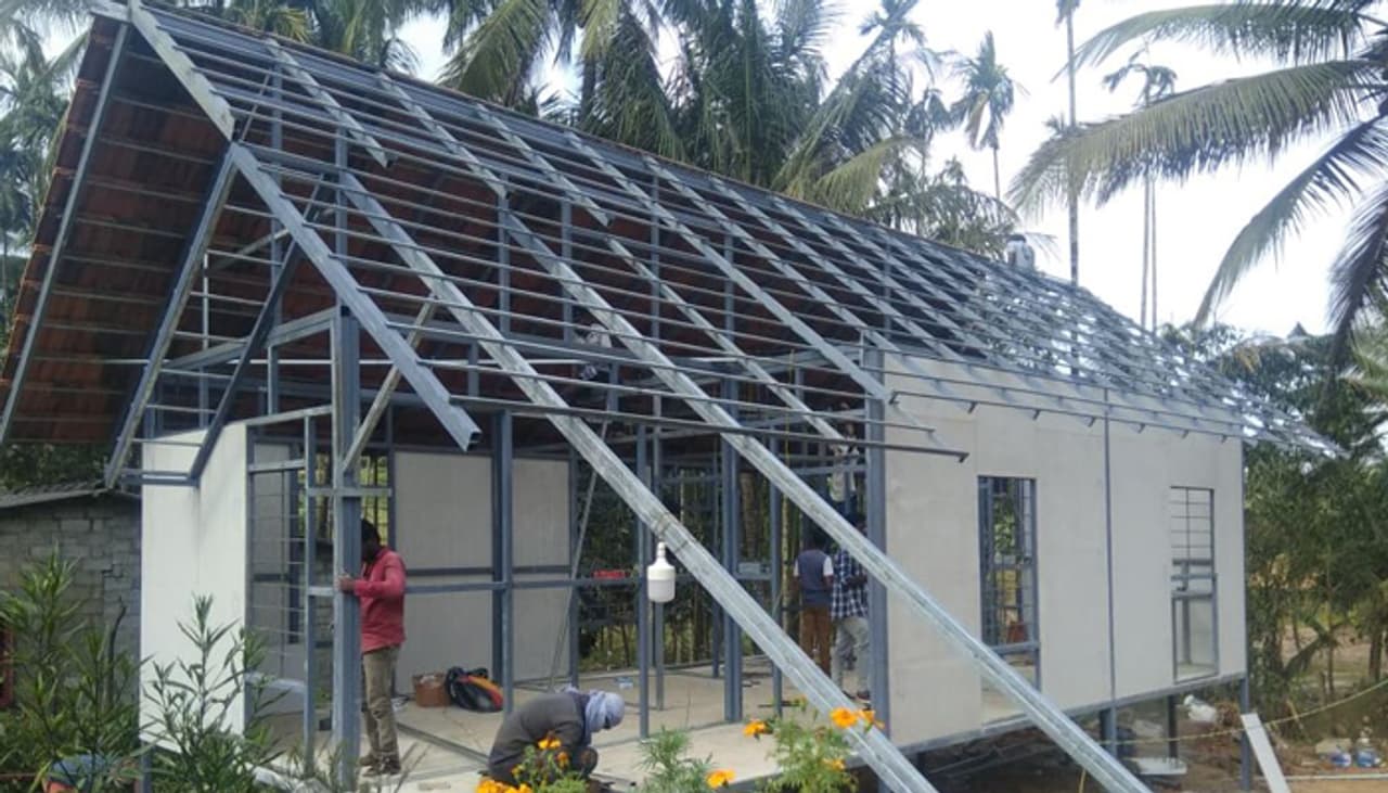 15 ദിവസം കൊണ്ടാണ് കേരള മാതൃകയില് വീട് നിര്മിച്ചത്. ഗുണമേന്മ കൂടിയ സിമന്റ് ഫൈബര് ബോര്ഡ്, ജി.ഐ, എം.എസ് പൈപ്പുകള്, റൂഫ് സിസ്റ്റം എന്നിവയിലൂടെ ഉറപ്പും സൗന്ദര്യവും ഒത്തിണക്കി രൂപകല്പന ചെയ്ത വീടിന് ചിലവ് ആറേകാല് ലക്ഷം രൂപയാണ്. നിര്മ്മാണ സാമഗ്രികളൊന്നും നഷ്ടപ്പെടാതെ തന്നെ അഴിച്ചുമാറ്റി മറ്റൊരിടത്ത് വീട് പുനര്നിര്മ്മിക്കാമെന്നതും ഇതിന്റെ പ്രത്യേകതയാണ്.