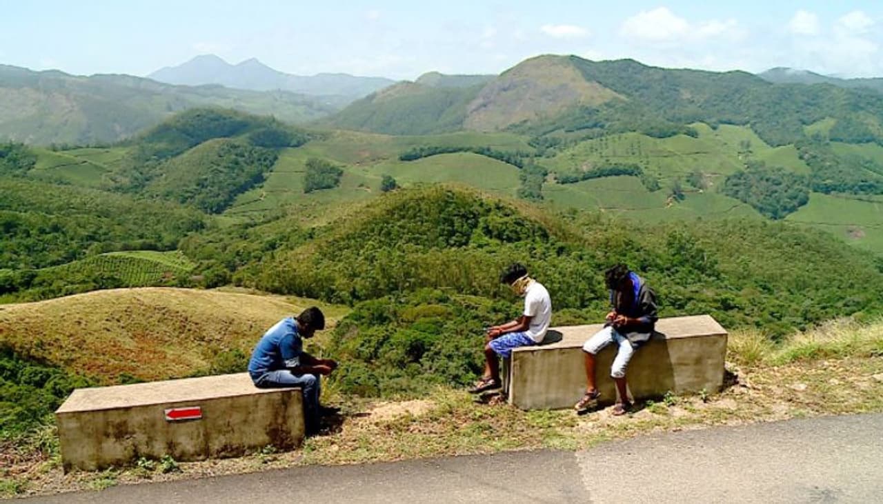 ഇരവികുളം ദേശീയോദ്യാനത്തിലെ റോഡ് വക്കിലിരുന്നാണ് ഇവരുടെ പഠനം. വരയാടുകൾക്ക് പേരുകേട്ട മൂന്നാർ ഇരവികുളം ദേശീയോദ്യാനത്തിലാണ് കുട്ടികളുടെ ഇരിപ്പ്. കാറ്റ് കൊള്ളാൻ ഇരിക്കുന്നതല്ല, ഓൺലൈൻ ക്ലാസിൽ പങ്കെടുക്കാൻ റേഞ്ചും നോക്കിയിരിക്കുകയാണ്.