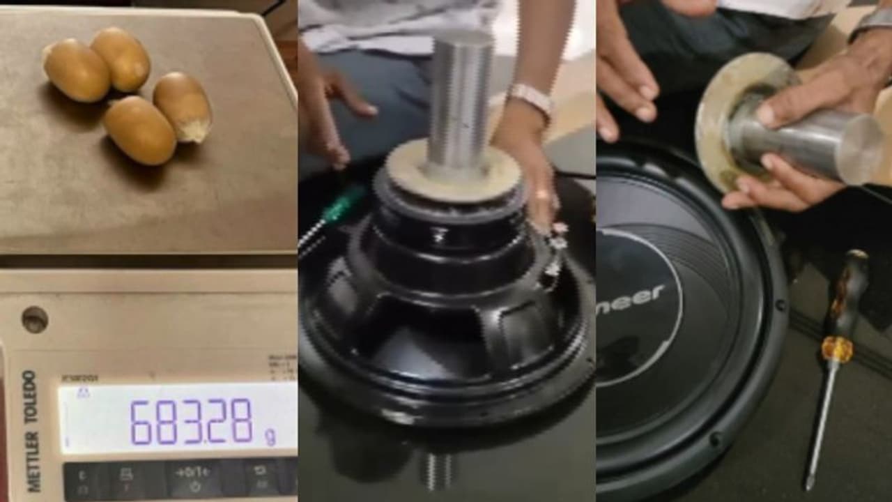 കസ്റ്റംസ് പരിശോധനക്കിടെ ഇയാളുടെ ബാഗേജ് സ്ക്രീൻ ചെയ്തപ്പോഴാണ് സ്പീക്കറിനകത്ത് സംശയാസ്പദമായ രീതിയിൽ എന്തോ ഉള്ളതായി കണ്ടെത്തിയത്.