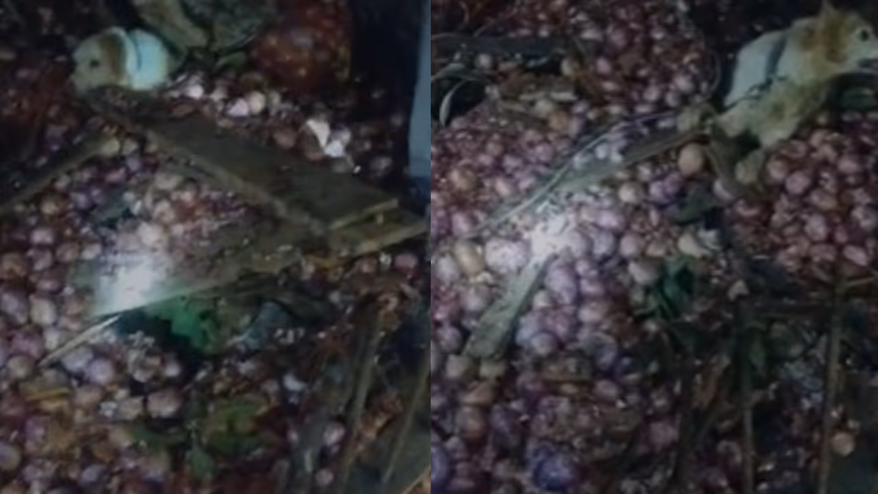 റോഡിന് വശത്തെ താഴ്ചയിലുള്ള വീടിന്റെ മുറ്റത്തേക്കാണ് ലോറി മറിഞ്ഞത്. ലോറി മറിഞ്ഞു വീണത് വീട്ടുമുറ്റത്തെ പട്ടിക്കൂടിന് മുകളിലേക്കായിരുന്നു. കൂട്ടിയിട്ട ഉള്ളി ചാക്കുകൾക്കിടയിൽ കുടുങ്ങിപ്പോയ വളർത്തുനായയെ നാട്ടുകാർ ഏറെ പണിപ്പെട്ടാണ് പുറത്തെടുത്തത്. ഉള്ളിക്കൂമ്പാരത്തിനിടയിൽ നിന്ന് നായയെ രക്ഷിക്കുന്ന ദൃശ്യങ്ങൾ സാമൂഹിക മാധ്യമങ്ങളിൽ പ്രചരിക്കുന്നുണ്ട്.