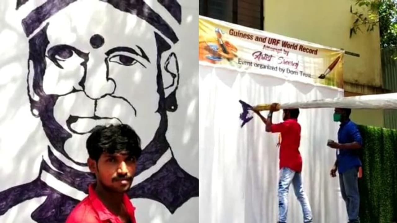 തിരുവനന്തപുരം: ഗിന്നസ് ആൻഡ് യുആർഎഫ് ലോക റെക്കോർഡ് ലക്ഷ്യമിട്ട് ലോകത്തിലെ ഏറ്റവും വലിയ പെയിന്റിങ് ബ്രഷ് ഉപയോഗിച്ച് മഹാത്മാ അയ്യൻകാളിയുടെ ചിത്രം വരച്ച് ആർട്ടിസ്റ്റ് ശ്രീരാജ്. നെയ്യാറ്റിൻകര കുന്നത്തുകാൽ ഗവ. യു.പി സ്കൂൾ അങ്കണത്തിൽ വച്ചാണ് ചിത്രം വരച്ചത്. 43 അടി ഉയരമുള്ള പെയിന്റിങ് ബ്രഷ് ഉപയോഗിച്ച് 10 അടി വീതിയും 12 അടി ഉയരവുമുള്ള കാൻവാസിലാണ് അയ്യങ്കാളിയുടെ ചിത്രം വരച്ചത്.