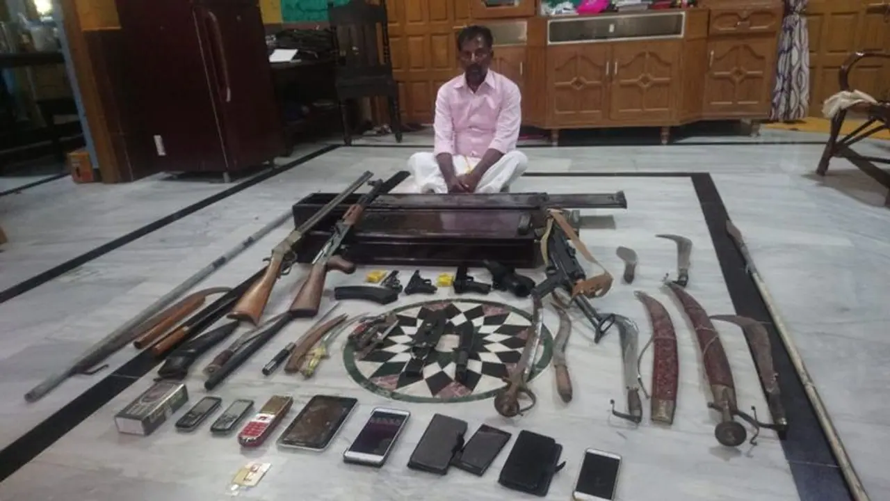 വാഹനത്തിൽ എകെ 47, മെഷീൻ ഗൺ, കൈത്തോക്കുകൾ, വടിവാൾ, മറ്റ് വിവിധ തരത്തിലുള്ള ആയുധങ്ങൾ എന്നിവ പിടിച്ചെടുത്തു. തുടർന്ന് പൊലീസ് ഇയാളുടെ വീട്ടിൽ നടത്തിയ തെരച്ചിലിലും സമാന ആയുധങ്ങൾ കണ്ടെത്തി