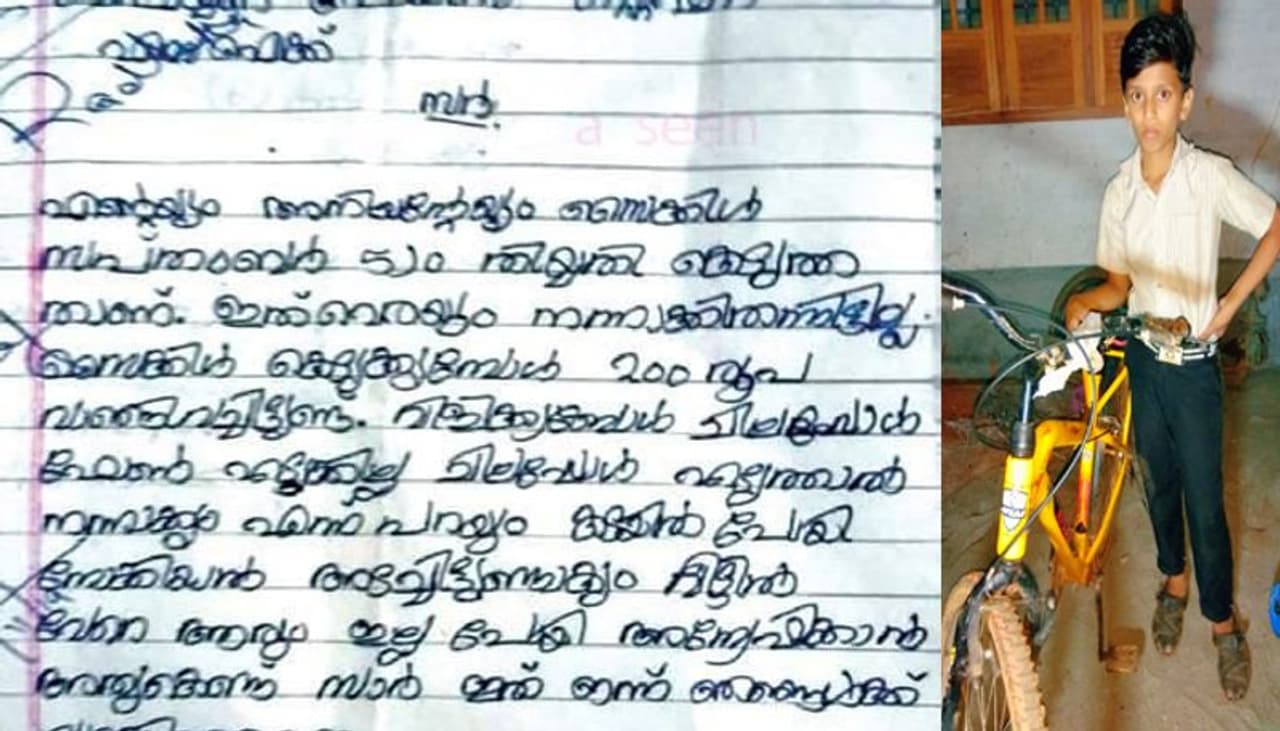 സ്കൂളിനടുത്ത് സൈക്കിള് കട നടത്തുന്ന ബാലകൃഷ്ണനെതിരെ നോട്ട്ബുക്കില് നിന്ന് കീറിയെടുത്ത ഒരു പേജിലാണ് തിങ്കളാഴ്ച ആബിര് പരാതി എഴുതിയത്. തന്റെയും അനിയന്റെയും കേടായ സൈക്കിളുകള് കഴിഞ്ഞ സെപ്റ്റബര് അഞ്ചിനാണ് ആബിര് ബാലകൃഷ്ണനെ ഏല്പ്പിച്ചത്. കൂലിയായി 200 രൂപയും നല്കി. ഒരാഴ്ചയ്ക്കം നന്നാക്കി കൊടുക്കാമെന്നായിരുന്നു വാക്കെങ്കിലും മാസം രണ്ട് കഴിഞ്ഞിട്ടും സൈക്കിള് തിരികെ കിട്ടിയില്ലെന്നായിരുന്നു പരാതി.