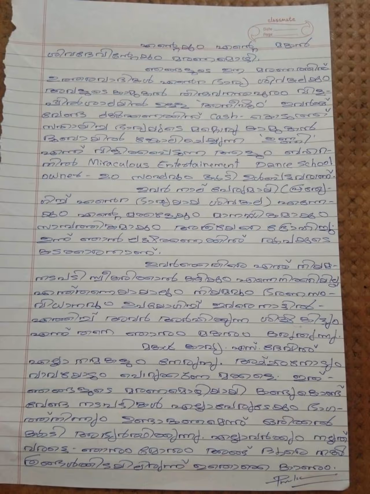 ഭാര്യ ഉൾപ്പെടുന്ന നാലുപേർ തന്നെയും മക്കളെയും മാനസികമായും സാമ്പത്തികമായും അത്രയേറെ ദ്രോഹിച്ചു എന്നും തന്നെ ലക്ഷകണക്കിന് രൂപയുടെ കടക്കാരൻ ആക്കിയെന്നും കത്തിൽ പ്രകാശ് പറയുന്നു. ഇവർക്ക് എതിരെ എന്ത് നിയമ നടപടി സ്വീകരിക്കാൻ കഴിയും എന്ന് തനിക്ക് അറിയില്ല എന്ത് തന്നെ ആയാലും നിയമവും ഭരണ സംവിധാനവും ഉപയോഗിച്ച് ഇവരെ നാട്ടിൽ എത്തിച്ചു അവർക്ക് അർഹിക്കുന്ന ശിക്ഷ തന്നെ കിട്ടുമെന്ന് താനും മകനും കരുതുന്നു എന്ന് പ്രകാശ് പറയുന്നു.