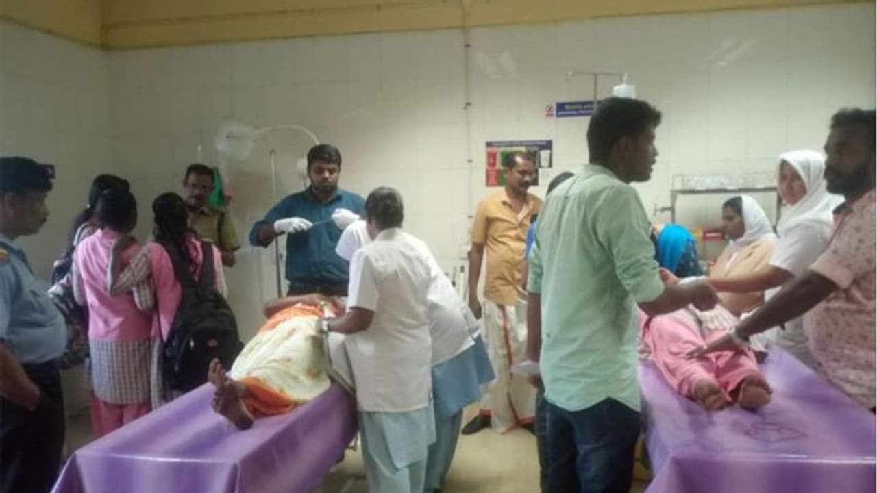 മുന്പേ പോയ ബസിനെ മറികടക്കാന് ശ്രമിക്കുന്നതിനിടെയായിരുന്നു അപകടം. പരുക്കേറ്റ രണ്ടു ബസുകളിലെയും യാത്രക്കാരായ പുള്ളിക്കണക്ക് ഉദയഭവനം ഗോപിക (17), കട്ടച്ചിറ, കൊച്ചുതറയില് അന്ന (17), പുതുപ്പള്ളി ക്രാശ്ശേരില് വിജിത (17), അറുനൂറ്റിമംഗലം പനയില് മോഹിനി (54), പുള്ളിക്കണക്ക് വൈഷ്ണവി വിലാസം ദേവപ്രിയ (17), കോയിക്കല് കൊട്ടക്കാട്ട് ഷൈനമ്മ (55), ചുനക്കര പായിപ്ര കിഴക്കതില് ഭാസ്കരന് (76), പുള്ളിക്കണക്ക് കൊച്ചയ്യത്ത് പാര്വതി (17), മങ്കുഴി പാര്വതി ഭവനത്തില് പാര്വതി (17), ഭരണിക്കാവ് സതീര്ഥ്യയില് ശ്രവണ (17), അറുനൂറ്റിമംഗലം പനയില് സുഷമ (49), പള്ളിക്കല് കപ്യാരേത്ത് പടീറ്റതില് മിനി (40). എന്നിവരെ താലൂക്കാശുപത്രിയില് പ്രവേശിപ്പിച്ചു.