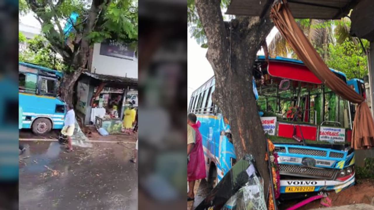 സ്കൂട്ടറിന് മറികടക്കാനുള്ള ശ്രമത്തിനിടയിൽ ബസ് നിയന്ത്രണം വിട്ട് മരത്തിൽ ഇടിക്കുകയായിരുന്നു. കുന്ദമംഗലത്തിന് സമീപം പത്താം മൈലിൻ ആണ് അപകടമുണ്ടായത്.