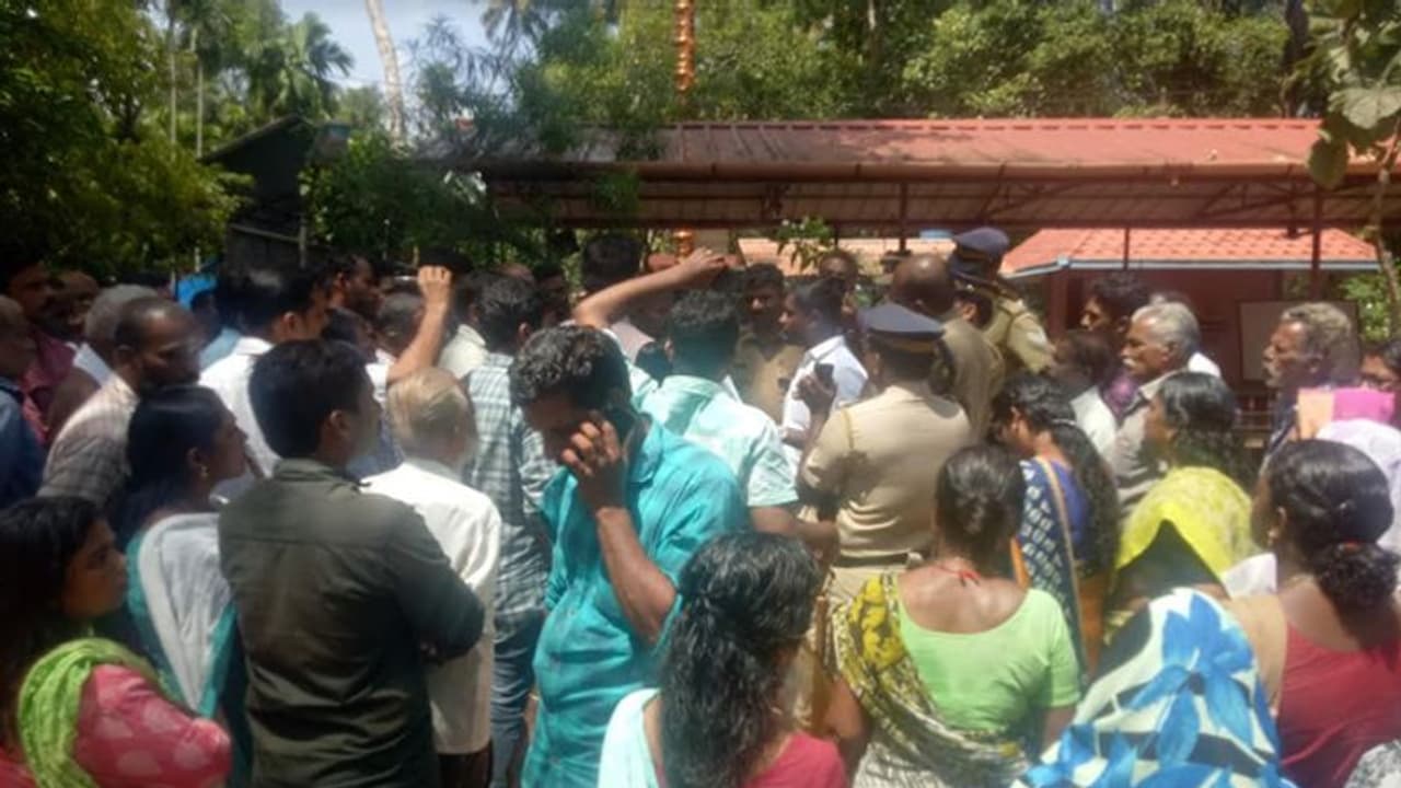 മതില് നിര്മ്മിക്കാന് കോടതി ഉത്തരവുമായി എത്തി പ്രവർത്തനം തുടങ്ങിയപ്പോയാണ് സ്ത്രീകള് ഉള്പ്പെടെയുള്ളവര് തടഞ്ഞത്. പ്രദേശത്തെ സംഘര്ഷാവസ്ഥ ഉടലെടുത്തതോടെ സിഐ മോഹന്ലാലിന്റെ നേതൃത്വത്തില് വന് പൊലീസ് സന്നാഹവും ഇവിടെ എത്തിയിരുന്നു. സ്ഥലം അളന്ന് കുറ്റിയിടുന്നതിനുള്ള ശ്രമം തുടങ്ങിയതോടെ സ്ത്രീകള് ഉള്പ്പെടെയുള്ള നൂറുകണക്കിന് പേര് നാമജപങ്ങളുമായി റോഡില് കുത്തിയിരുന്നു.