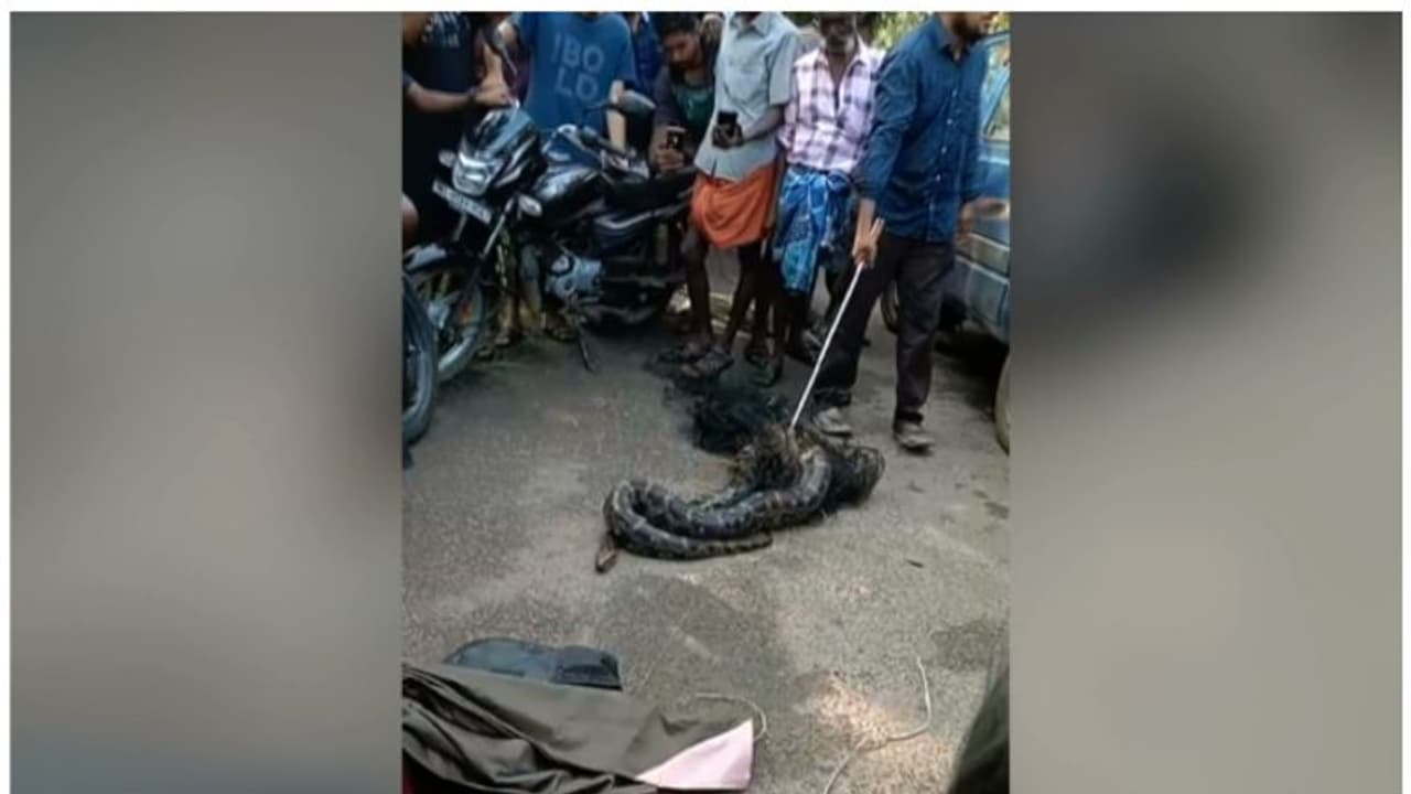 രാവിലെ 7.30 ഓടെ മീൻ വല ഉയർത്തിയപ്പോഴായിരുന്നു പാമ്പിനെ കണ്ടത്.