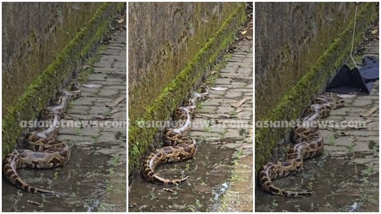 കളമശ്ശേരി മുനിസിപ്പൽ ഓഫീസിന് പിന്നിലുള്ള നജാത്ത് നഗറിൽ ഇന്ന് രാവിലെ പൂച്ചയെ വിഴുങ്ങിയ നിലയിൽ മലമ്പാമ്പിനെ കണ്ടെത്തി. ഒരു പറമ്പ് വൃത്തിയാക്കുന്നതിനിടയിൽ തൊഴിലാളികളാണ് പാമ്പിനെ കണ്ടത്.