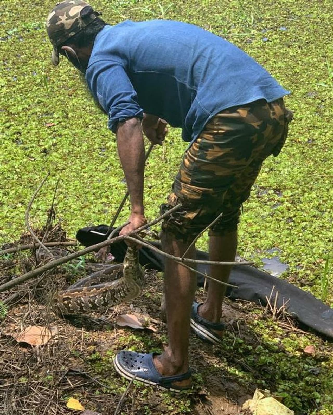 ഇന്നലെ രാവിലെ കൂട്ടിലടച്ച താറാവുകള് കൂട്ടത്തോടെ കരയുന്ന ശബ്ദം കേട്ട് ഓടിയെത്തിയ കണ്ണനാണ് പെരുംപാമ്പിനെ കണ്ടത്. കണ്ണന് പാമ്പ് പിടുത്തക്കാരനായ ചക്കുളം പ്രജീഷിനെ വിവരം അറിയിച്ചു. പ്രജീഷ് എത്തി പെരുംപാമ്പിനെ സാഹസികമായി ചാക്കിലാക്കി. ചാക്കിലാക്കിയ പെരുംപാമ്പിനെ റാന്നി ഫോറസ്റ്റ് ഓഫീസിന് കൈമാറി.