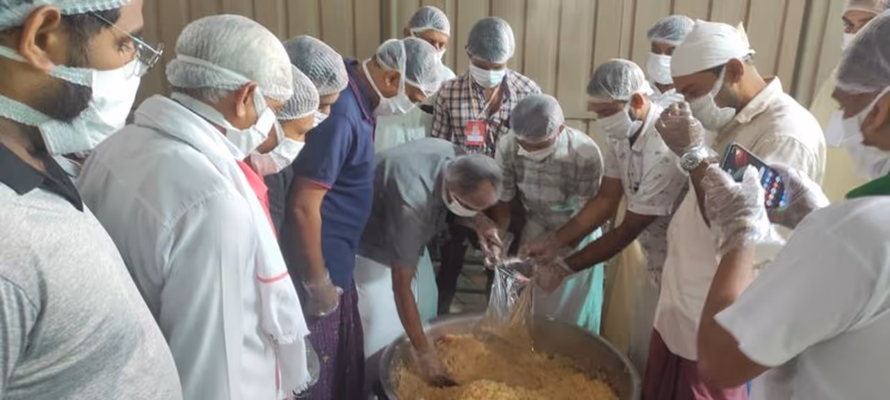 മാമ്പുഴ പള്ളി ഓഡിറ്റോറിയം, പി ടി ബി ഓഡിറ്റോറിയം, തരിശ് മദ്റസഹാൾ, കണ്ണത്ത് മദ്റസഹാൾ, മഞ്ഞൾപാറ മജ്ലിസ് ഹാൾ എന്നിവിടങ്ങളിലായാണ് ഭക്ഷണം പാകം ചെയ്തത്. ഇതിന് 40 പാചക വിദഗ്ധർ നേതൃത്വം നൽകുകയും ചെയ്തു. പാചകം, പാക്കിങ്, ഭക്ഷണമെത്തിക്കൽ തുടങ്ങിയവക്ക് ആയിരം വളന്റിയർമാരാണ് ആവേശത്തോടെ സേവനത്തിനെത്തിയത്.
