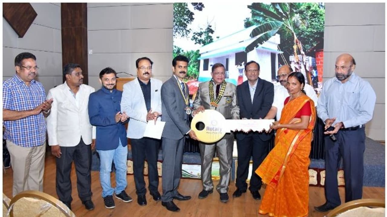 പ്രളയദുരിത ബാധിതര്ക്കായി റോട്ടറി കാലിക്കറ്റ് സൈബര് സിറ്റി നിര്മ്മിച്ച് നല്കുന്ന സ്നേഹവീടിന്റെ താക്കോല് ഡിസ്ട്രിക്റ്റ് ഗവർണർ ഡോ ഇ കെ ഉമ്മറിൽ നിന്ന് കക്കോടി സ്വദേശി അജിതയും ചെലവൂർ സ്വദേശി ബാവയിയും ഏറ്റുവാങ്ങി