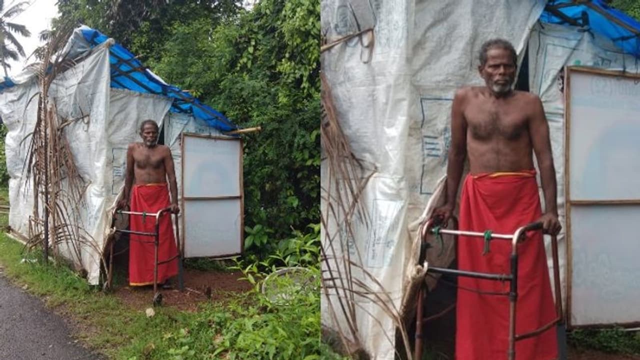 മുൻ തമിഴ്നാട് ഗവർണ്ണർ ഡോ. പി സി അലക്സാണ്ടറുടെ വീട്ടുജോലിക്കാരനായിരുന്ന ഇദ്ദേഹത്തിന്റെ ഭാര്യയുടെ പേരിൽ 23 സെന്റ് സ്ഥലമുണ്ടായിരുന്നു. ആ സ്ഥലം 40 ലക്ഷം രൂപയ്ക്ക് വിറ്റിട്ട് ഭാര്യയും മക്കളും ഉപേക്ഷിച്ച് പോയി. ഇദ്ദേഹത്തിന്റെ മാതാവിന്റെ പേരിൽ കുടികിടപ്പ് കിട്ടിയ 8 സെന്റ് സ്ഥലത്തുള്ള ഒരു പഴയ ഷെഡ്ഡിലായിരുന്നു പിന്നീട് താമസം. പ്രളയകാലത്ത് വെള്ളം കയറി നശിച്ചതിനാൽ അവിടുത്തെ താമസം ശരിയാകാതെ വന്നു. ഇതിനെ തുടർന്ന് ഇദ്ദേഹത്തോട് അലിവു തോന്നിയ സ്ഥലത്തെ ഓട്ടോറിക്ഷാ ഡ്രൈവർമാർ കവുങ്ങും മുളയും പഴയ ഫ്ലക്സ് ബോർഡും പ്ലാസ്റ്റിക് ഷീറ്റുമുപയോഗിച്ച് ഇരതോട് പാലത്തിന് സമീപം റോഡരികിൽ കെട്ടിക്കൊടുത്ത ഷെഡ്ഡിലാണ് ഇപ്പോൾ ഇദ്ദേഹത്തിന്റെ താമസം.