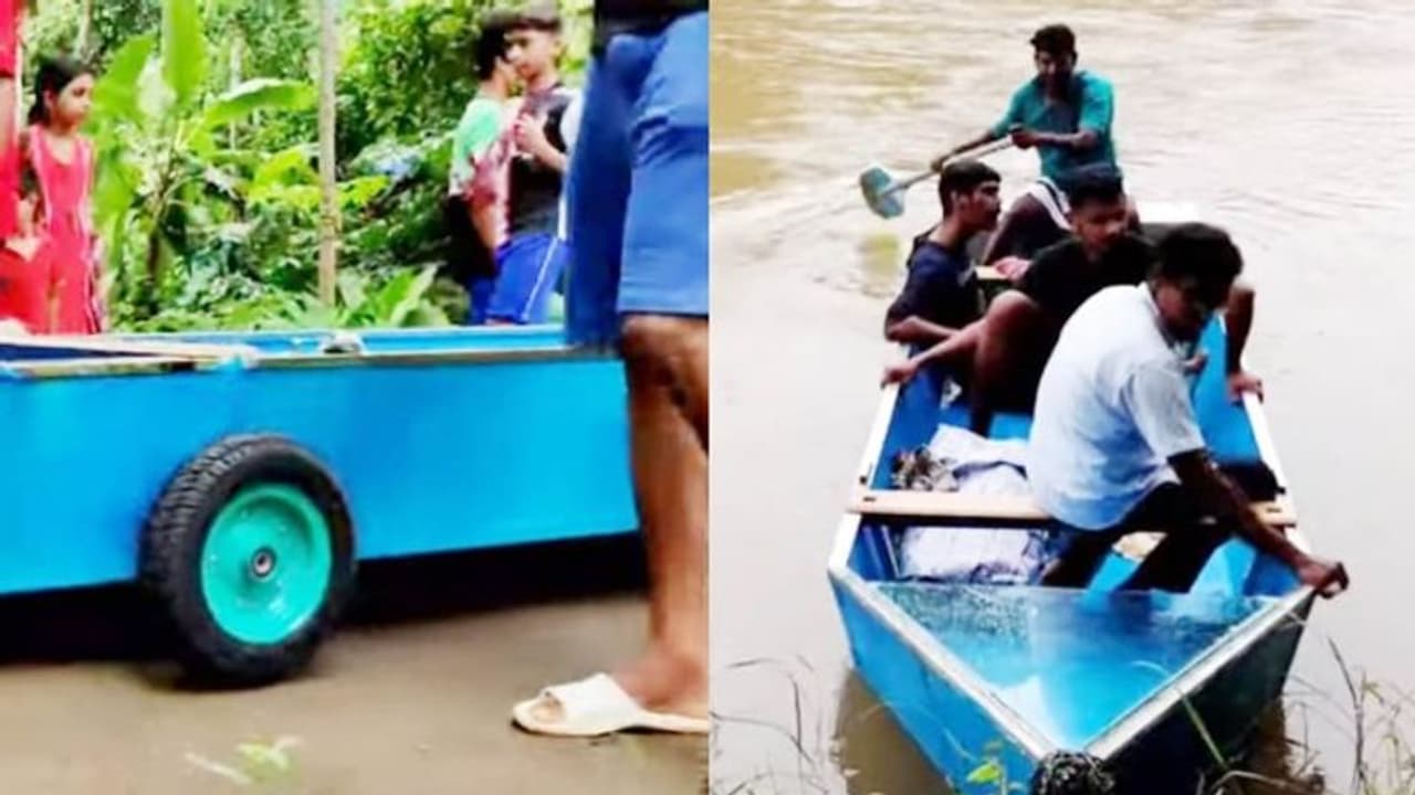 മലപ്പുറം പട്ടർക്കടവിലെ ചോലപറമ്പ് വീട്ടിൽ ശംസുദ്ദീൻ ഒരു ബോട്ട് നിർമിച്ചു, വെള്ളത്തിൽ മാത്രമല്ല, കരയിലും ഓടുന്ന ഒരു ബോട്ട്.