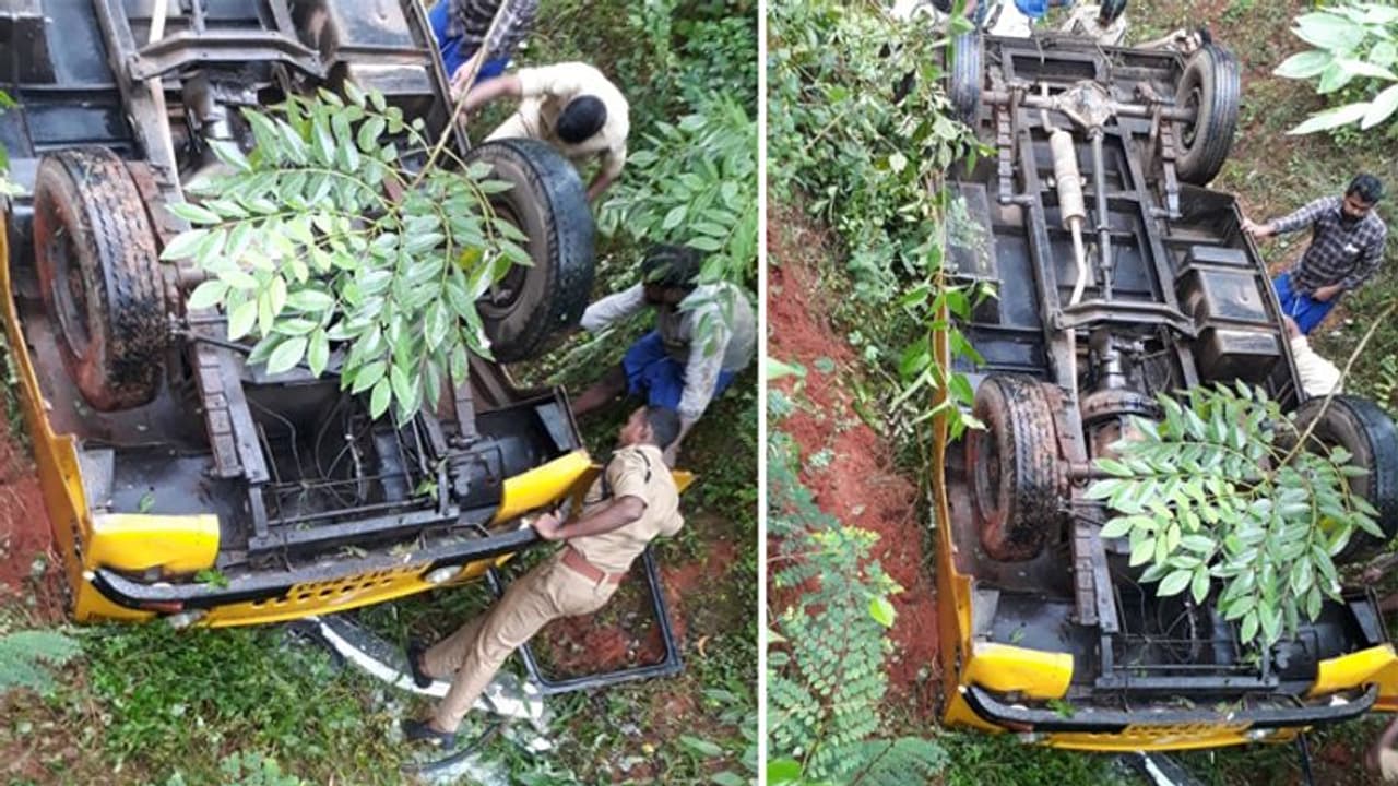 ഒരു വാഹനത്തിന് മാത്രം കഷ്ടിച്ച് പോകാൻ കഴിയുന്ന റോഡിലാണ് അപകടം നടന്നത്. തലകീഴായി മറിഞ്ഞ ബസിനുള്ളിൽ നിന്ന് പരിക്ക് പറ്റിയ കുട്ടികളെ നാട്ടുകാർ രക്ഷപ്പെടുത്തി