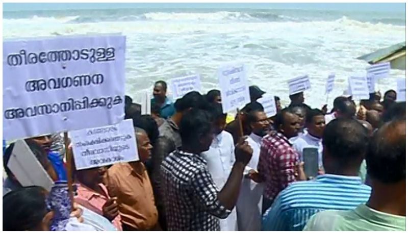 മന്ത്രിമാരും നേതാക്കന്മാരും ആരും ഇങ്ങോട്ട് തിരിഞ്ഞ് നോക്കിയിട്ടില്ലെന്നും ആഴ്ചകളായി അമ്പതോളം പേര് ചാക്കുകള് വച്ച് ഒരോ വീട് സംരക്ഷിക്കുകയാണെന്നുമാണ് നാട്ടുകാര് പറയുന്നത്. അത്സമയം പ്രശ്നത്തിന് പരിഹാരം കണ്ടില്ലെങ്കില് സുനാമി സമരത്തേക്കാള് വലിയ സമരം നടത്തുമെന്ന് ഫാദര് സേവ്യർ കുടിയാംശ്ശേരി പറഞ്ഞു.