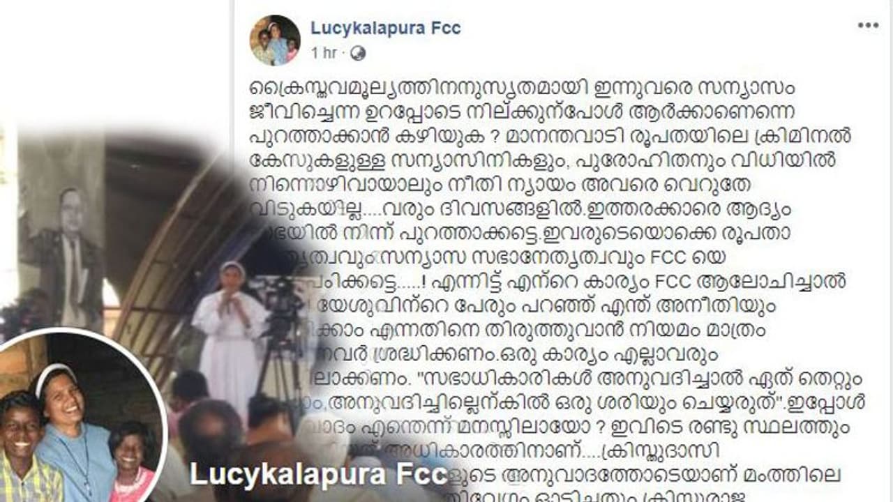 സിസ്റ്റര് ലൂസി കളപ്പുരയുടെ ഫേസ്ബുക്ക് പോസ്റ്റിന്റെ പൂര്ണ്ണരൂപം: