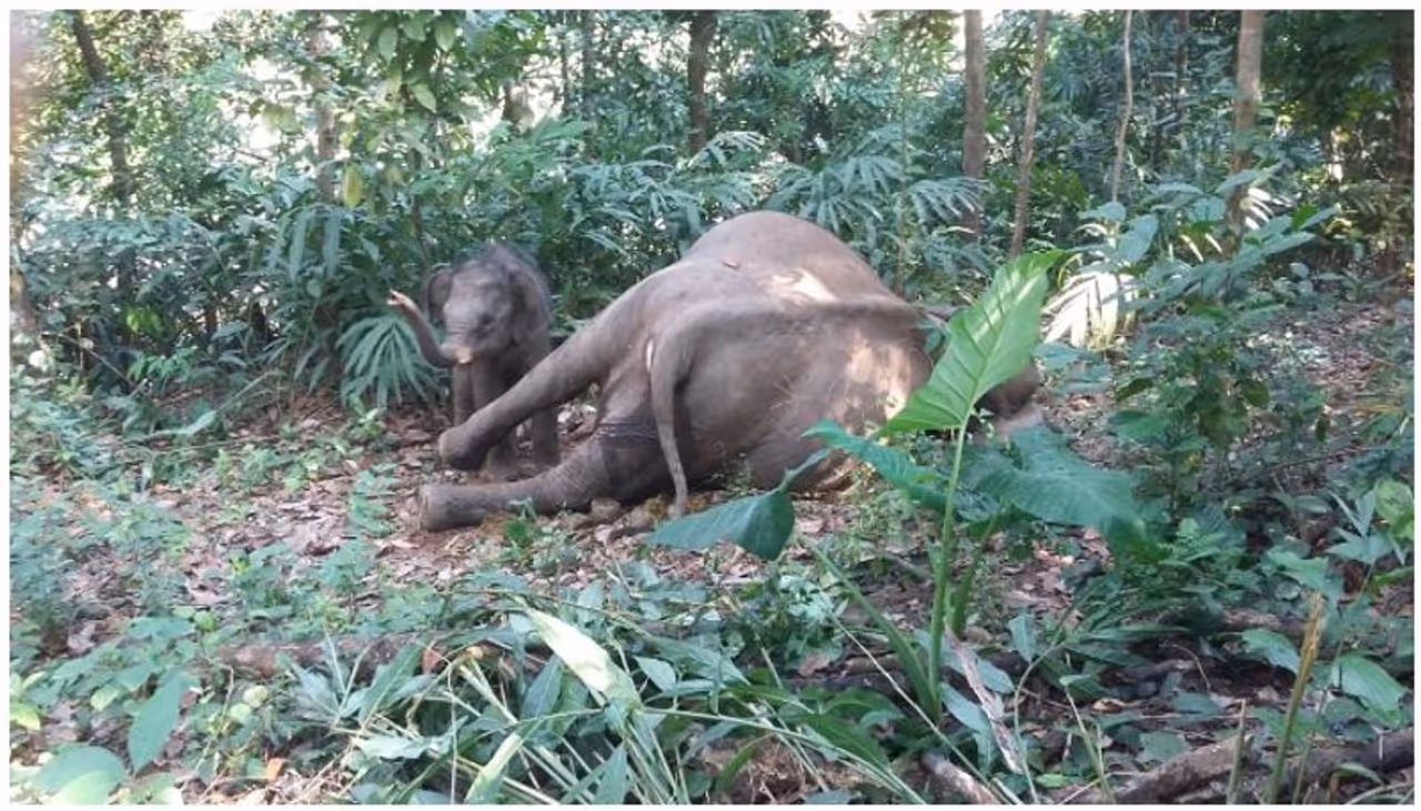 ചരിഞ്ഞ പിടിയാനയ്ക്ക് സമീപം ആനയെ തൊട്ടും തലോടിയും നില്ക്കുകയായിരുന്നു കുട്ടിയാന. നിലത്തുകിടക്കുന്ന പിടിയാനയെ എഴുന്നേല്പ്പിക്കാന് വിഫലശ്രമങ്ങളുമായി നടക്കുന്ന കുട്ടിയാനയുടെ ചിത്രം കരളലിയിക്കുന്നതായിരുന്നു.
