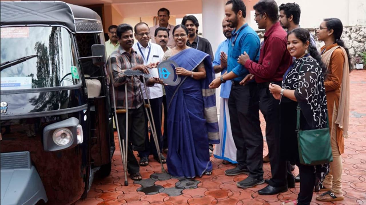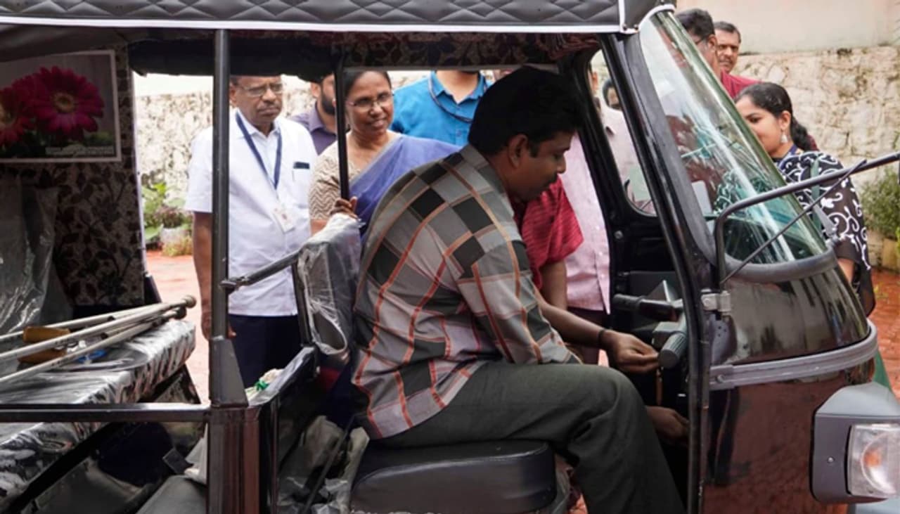 ഇടതുകാല് മുറിച്ചു മാറ്റേണ്ടി വന്നതിനാല് നേരത്തെ ചെയ്തിരുന്ന റബ്ബര് ടാപ്പിംഗ് തൊഴില് തുടരാനാവില്ലെന്നും ഓട്ടോ റിക്ഷ ഓടിക്കാനറിയാമെന്നും സഹായമായി ഓട്ടോ നല്കണമെന്നും പറഞ്ഞ് സജു സാമൂഹ്യ സുരക്ഷാ മിഷന് അപേക്ഷ നല്കിയിരുന്നു. സജുവിന്റെ അപേക്ഷ പരിഗണിച്ച് മന്ത്രിയുടെ നിര്ദേശ പ്രകാരമാണ് സാമൂഹ്യ സുരക്ഷാ മിഷന് വി കെയര് പദ്ധതിയില് ഉള്പ്പെടുത്തി ഓട്ടോ വാങ്ങി നല്കിയത്.