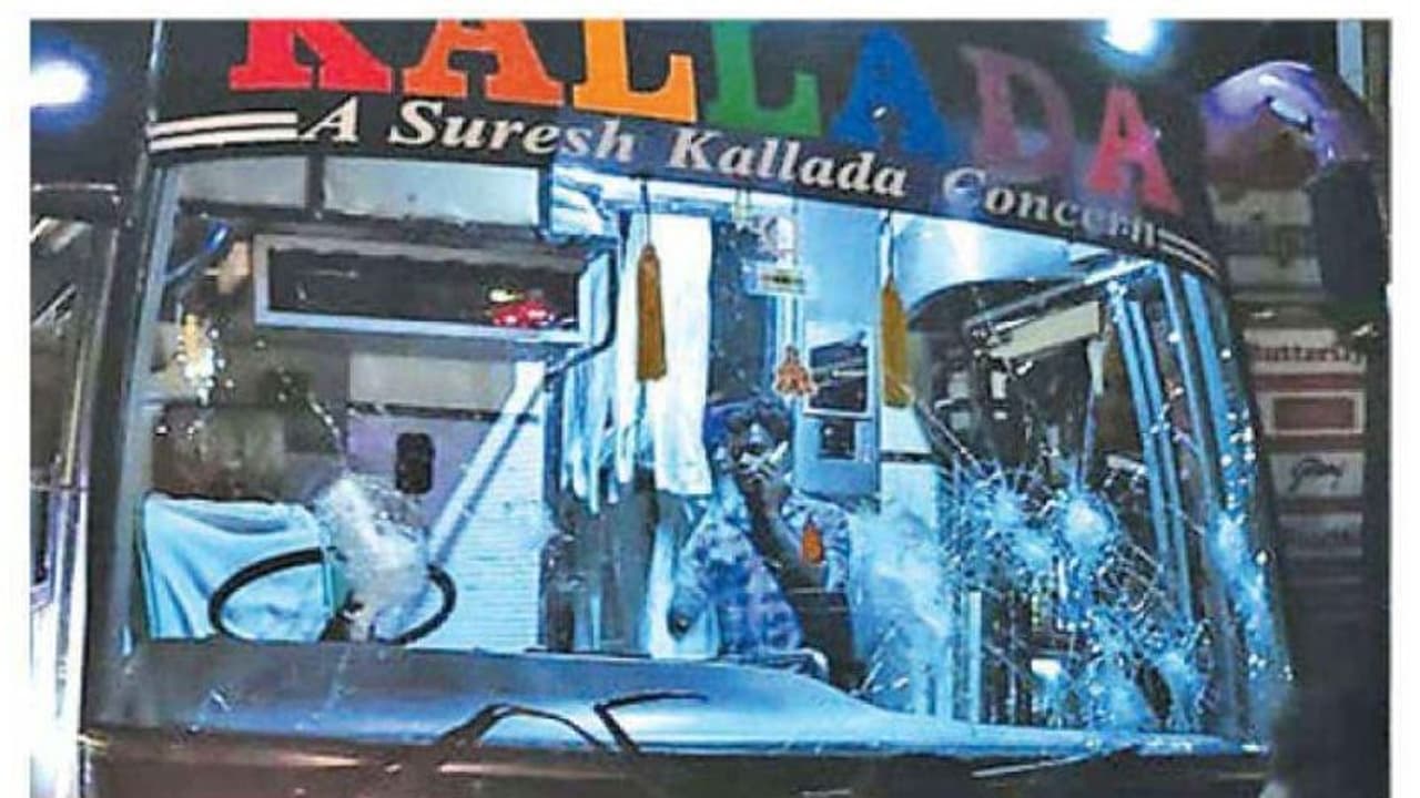 കല്ലേറില് ബസിന്റെ ചില്ലുകള് തകര്ന്നു. ഡ്രൈവര് ഓടിരക്ഷപ്പെട്ടു. ഒരാളെ പൊലീസ് കസ്റ്റഡിയിലെടുത്തു.