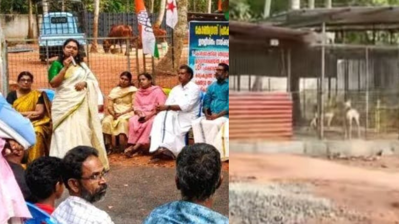 തെരുവ് നായ് ഷെല്ട്ടറിനെതിരെ കോണ്ഗ്രസ് നടത്തിയ പ്രതിഷേധം