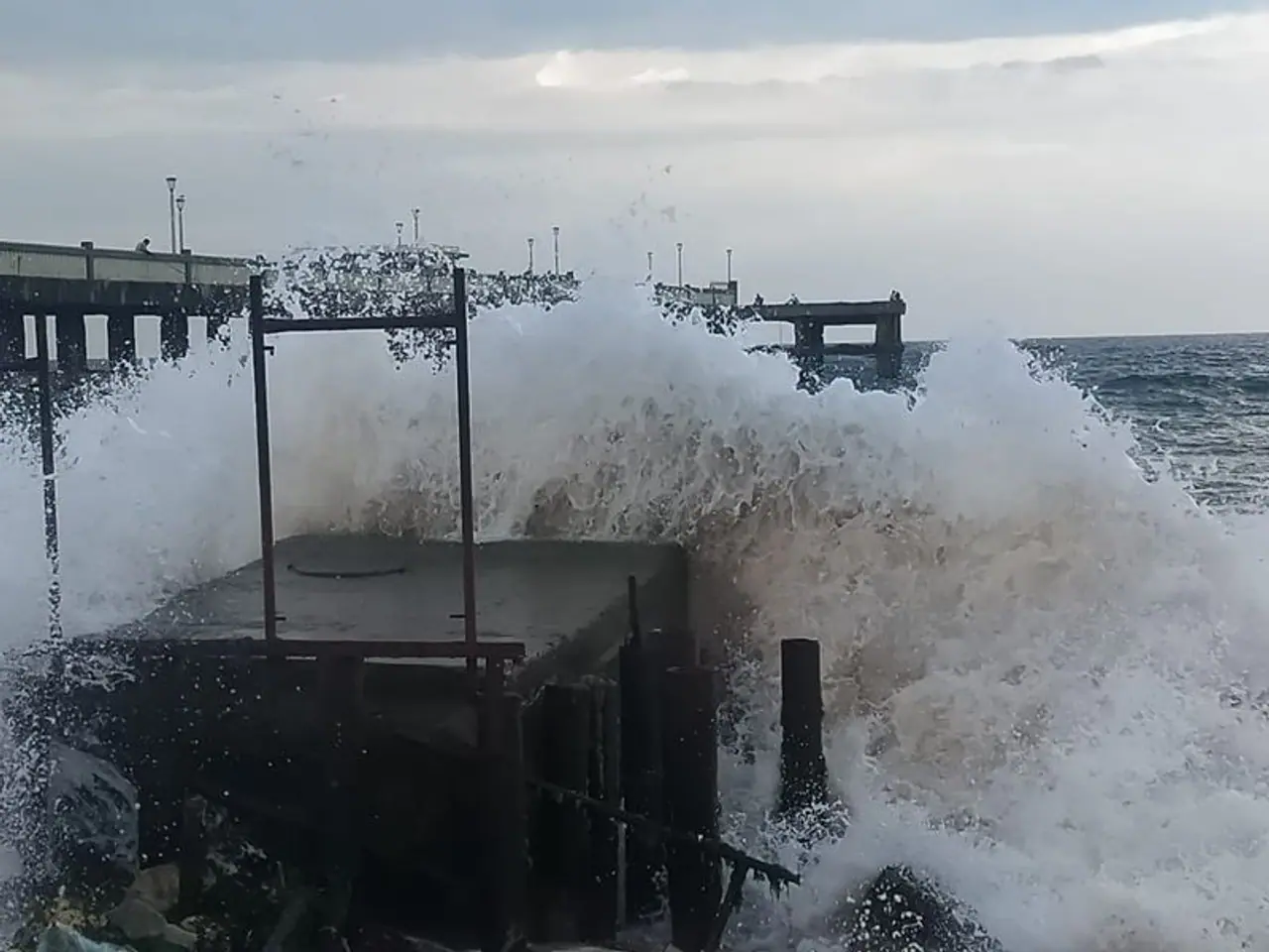 (ശക്തമായ കടല്ക്ഷോഭത്തെ തുടര്ന്ന് ശംഖുമുഖം കടല് പാലത്തിന് സമീപം ശക്തമായ തീരയടിക്കുന്നു.)