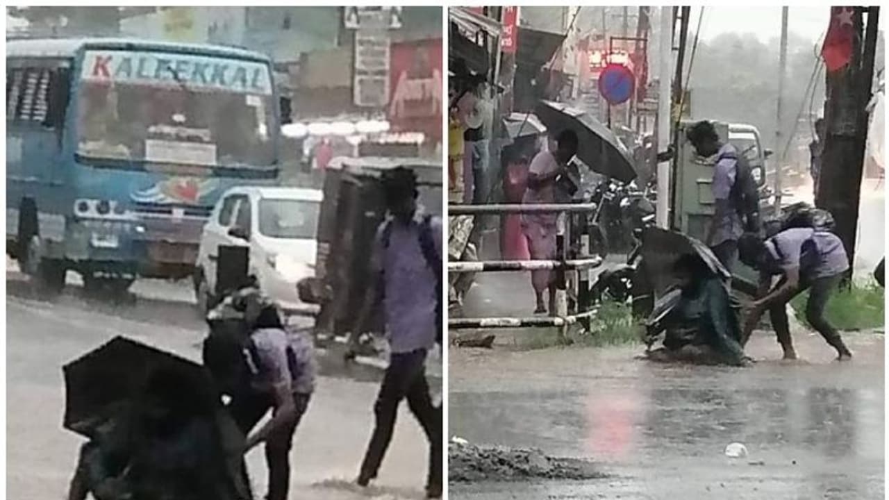 ചാരുംമൂട്: സമൂഹത്തില് നന്മ വറ്റാത്ത മനസ്സുകളുണ്ടെന്ന് തെളിയിക്കുന്ന പല സംഭവങ്ങളും സോഷ്യല് മീഡിയ ഉള്പ്പെടെയുള്ള നവ മാധ്യമങ്ങളിലൂടെ വൈറലായിട്ടുണ്ട്. നന്മയും സഹാനുഭൂതിയും വാക്കുകള് കൊണ്ടല്ല പ്രവൃത്തിയിലൂടെയാണ് പ്രകടമാക്കേണ്ടത് എന്ന് ഒരിക്കല് കൂടി തെളിയിക്കുകയാണ് ഒരു കൂട്ടം സ്കൂള് വിദ്യാര്ത്ഥികള്. റോഡിലെ വെള്ളക്കെട്ടില് വീണ അംഗപരിമിതനായ യാചകനെ സഹായിച്ചാണ് ഇവര് ശ്രദ്ധ നേടിയത്. ആലപ്പുഴയിലെ ചാരുംമൂട് ജംഗ്ഷനിലാണ് ശക്തമായ മഴയെ തുടര്ന്നുണ്ടായ വെള്ളക്കെട്ടില് അകപ്പെട്ട കാലുകളില്ലാത്ത യാചകനെ വിദ്യാര്ത്ഥികള് രക്ഷപ്പെടുത്തിയത്.